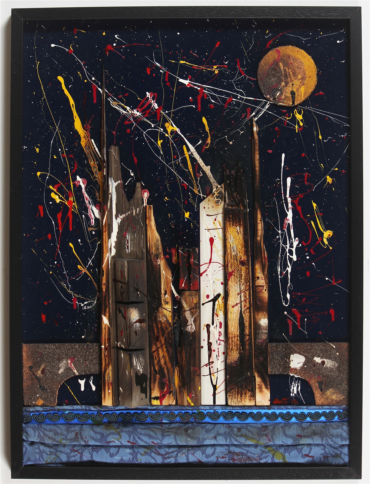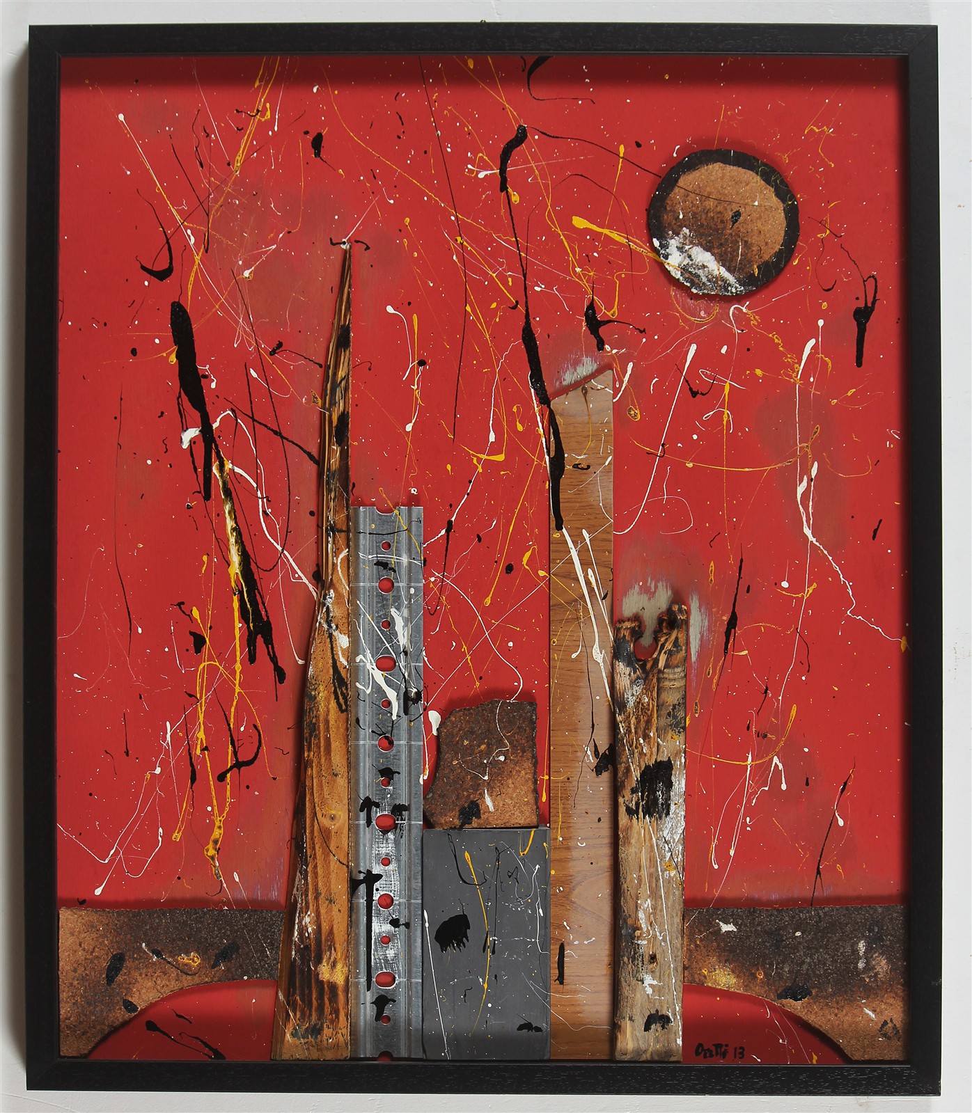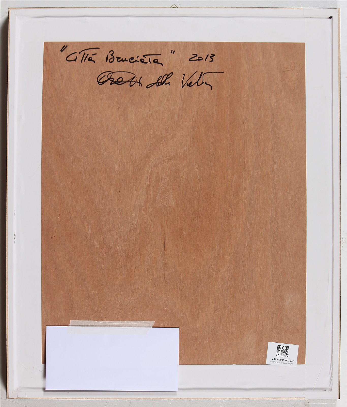 ORETTI DALLA VOLTA GIANFRANCO (n. 1954) Città bruciata. Lotto composto da n.2 opere. Tecnica mista su tavola. Cm 55,00 x 75,00. Lotto composto da n. 2 opere su tavola. Dimensioni 75x55 cm, 65x55 cm. Autentica dell'artista su fotografia.