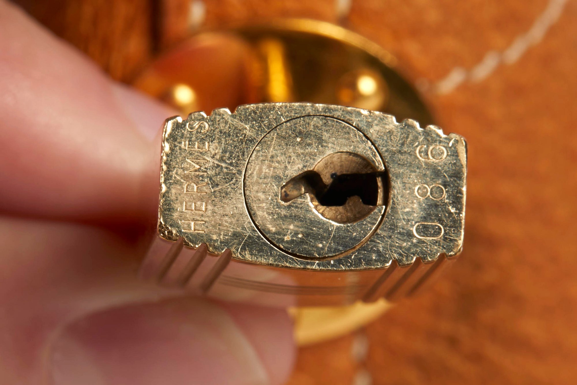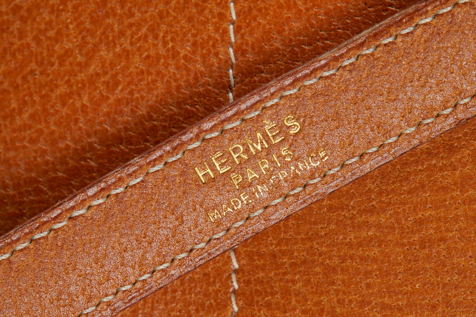 HERMÈS Borsa a mano e a tracolla modello Bolide in pelle di vitello color caramello, 1993. Tracolla removibile in pelle. Hardware in metallo dorato e cuciture a contrasto. Corredata di clochette. Cm 28x34x14. Reca marchio Hermès, Paris, Made in France e lettere di identificazione dell'artigiano e dell'anno. (lievi difetti e restauri)