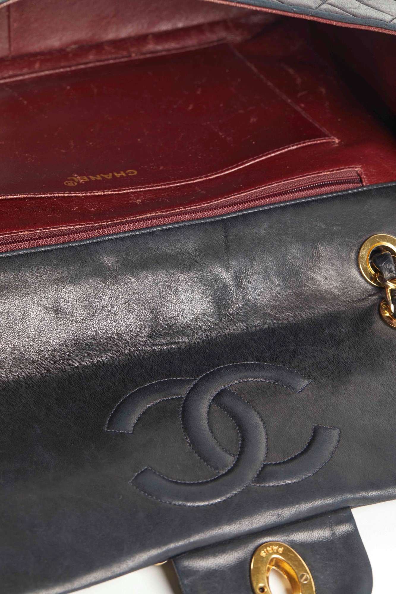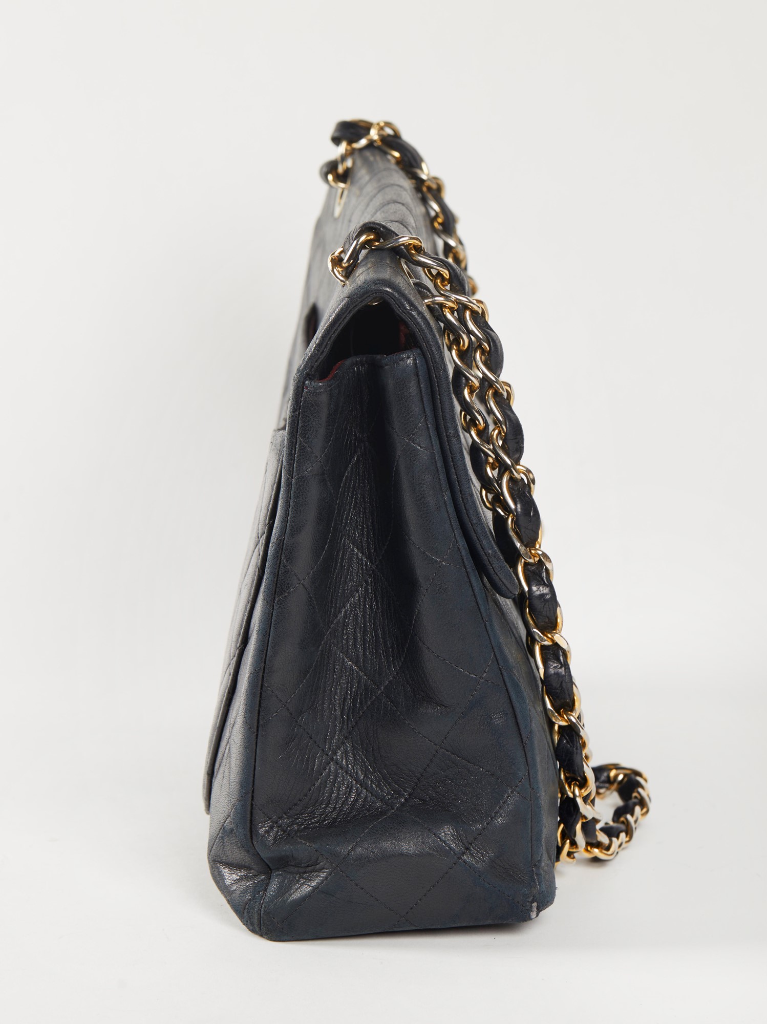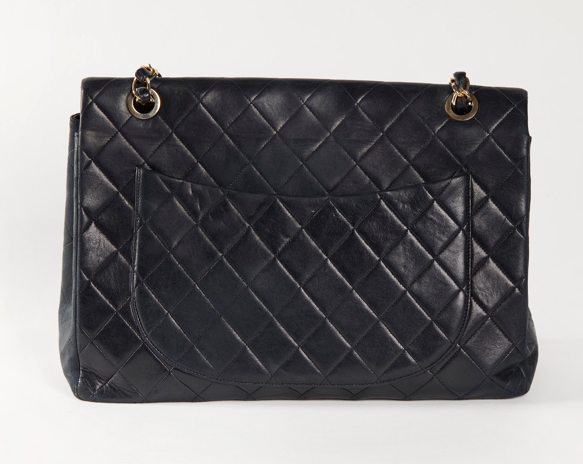 CHANEL Borsa modello Timeless Maxi in pelle di agnello matelassé nera. Hardware in metallo dorato. Anni '90. Cm 34x23x810. Reca marchi CC, Chanel, Paris, Made in France. (difetti)