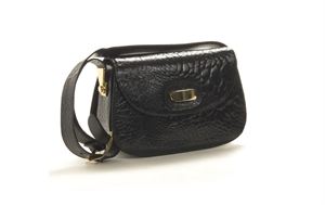 BORSA IN TARTARUGA Borsa artigianale a tracolla, a forma di mezzaluna, di colore nero, chiusura a pattina, anni '70 Cm 17x26 TORTOISE BAG 1970's black tortoise shoulder bag, half moon shaped with flap closure. Size cm 17 x 26