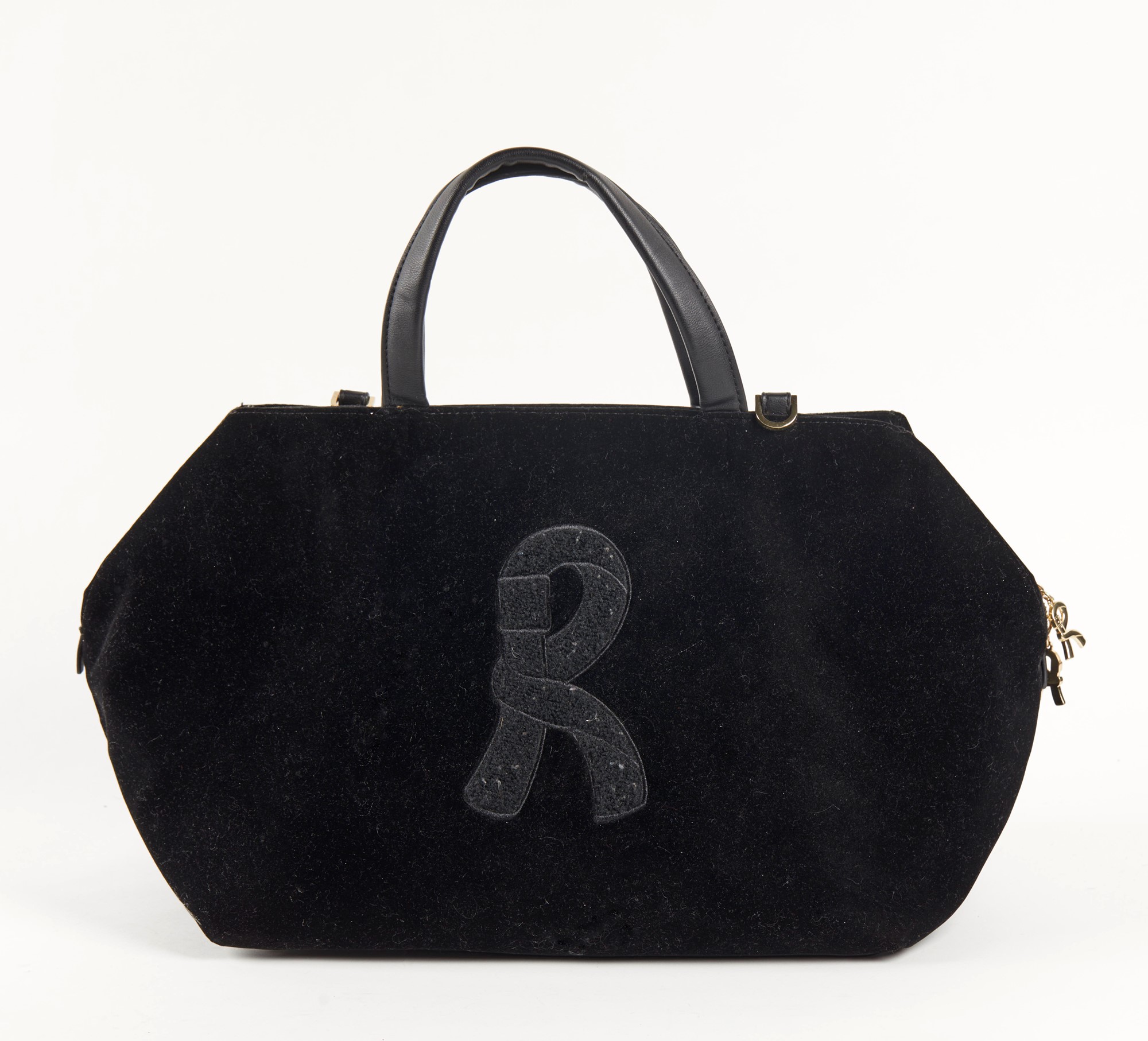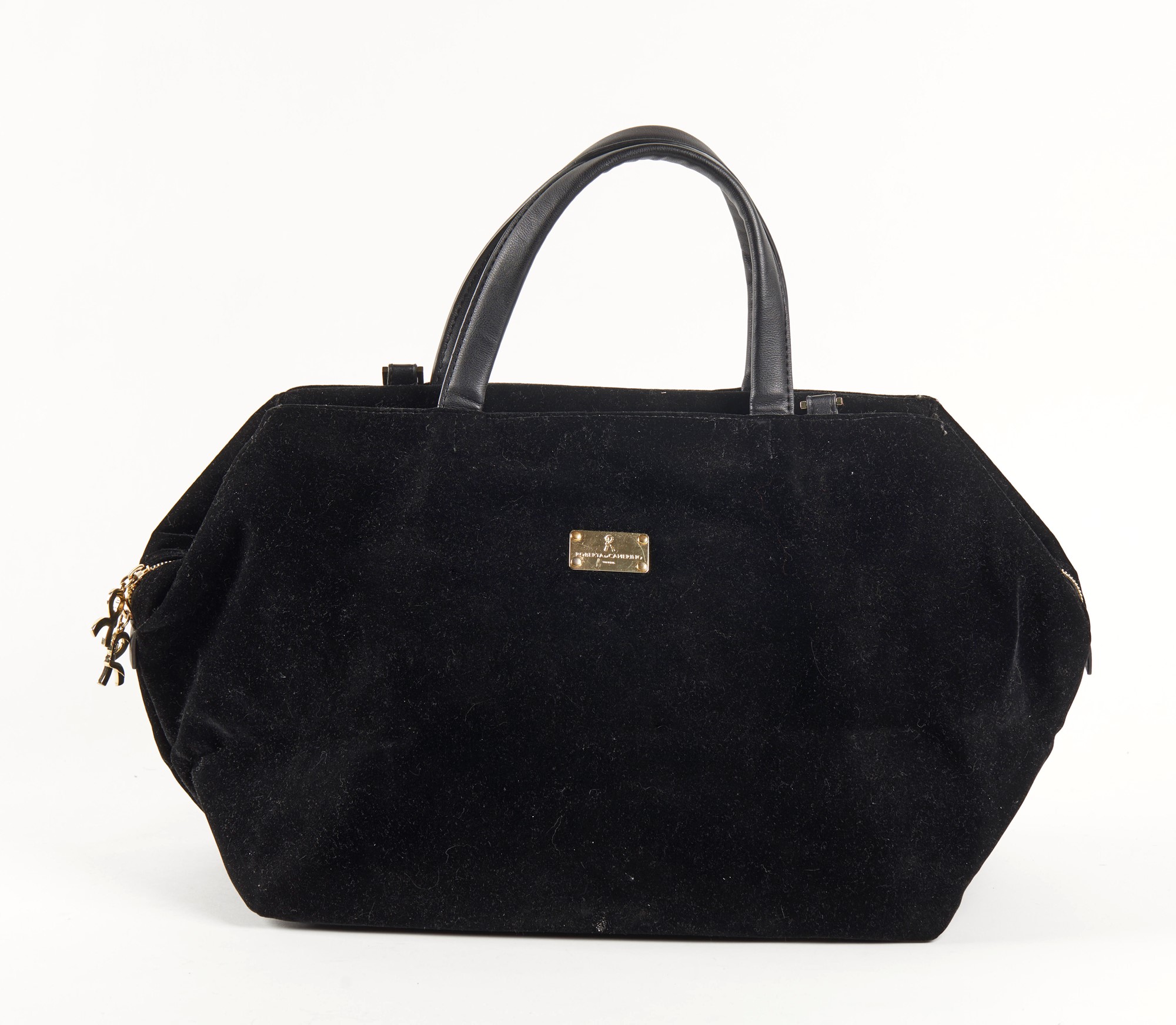 ROBERTA DI CAMERINO Borsa a mano in velluto nero e manici in ecopelle. Cm 30x50x20. Reca marchio Roberta di Camerino, Venezia.