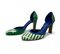 LA POUDRE DANS LES YEUX Sandali in pelle e cotone sui toni del verde, con decorazione a motivi geometrici bianci e applicazione di pailettes sul tacco. Taglia 40. Recano marchio La Poudre Dans Les Yeux. Corredate di scatola.