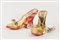 EMILIO PUCCI Sandali gioiello, con tacco a zeppa in tessuto tipico della Maison e lacci in camoscio rosa alla schiava. Taglia 41. Recano etichetta Emilio Pucci, Firenze.