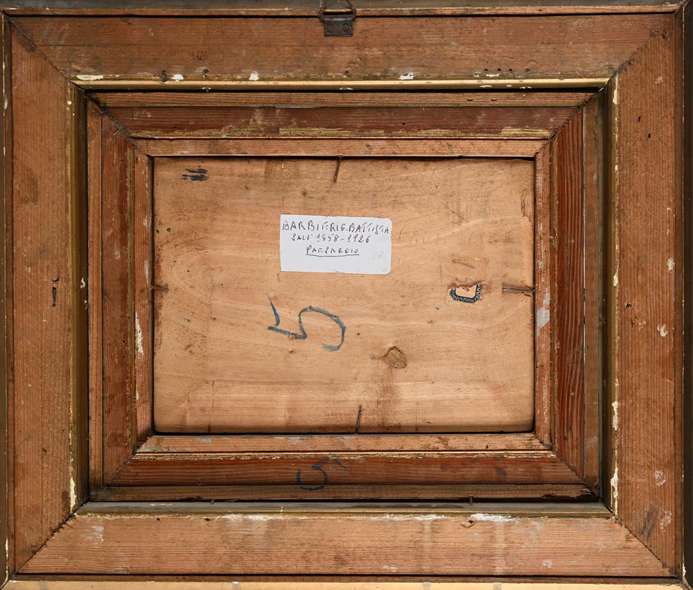 La passeggiata in villa firmato in basso a destra Barbieri olio su tavola cm 17 x 24 – in cornice 37 x 44