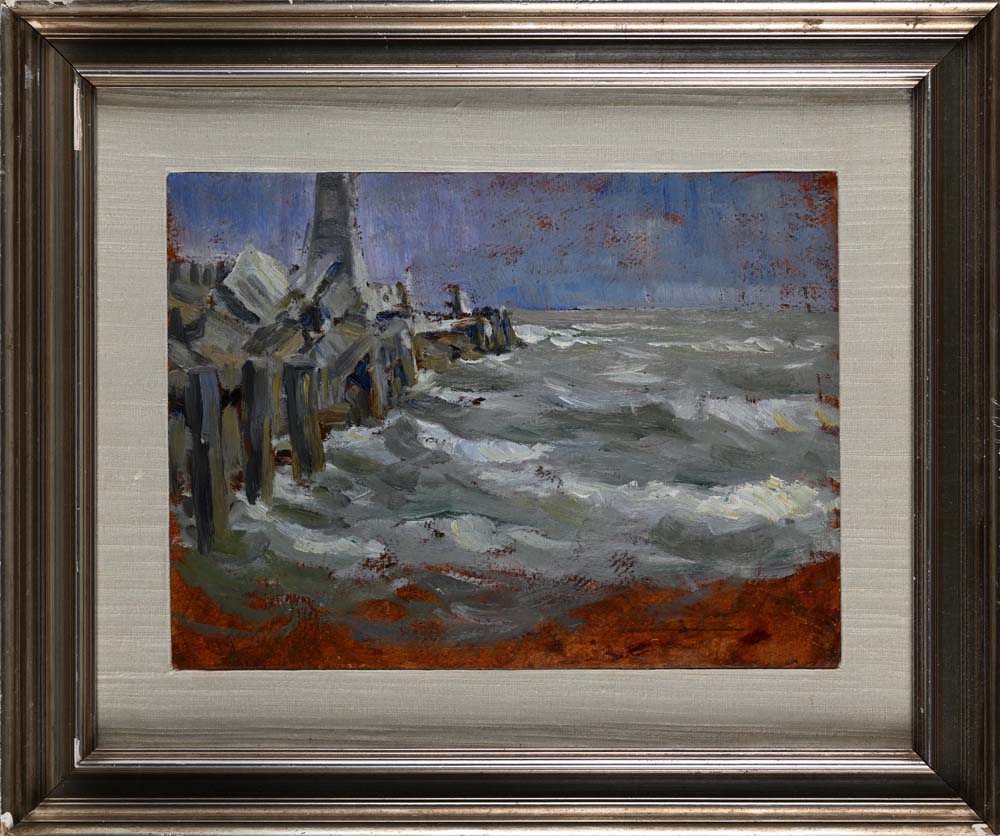 Scuola toscana seconda metà del XIX secolo () Mareggiata sugli scogli olio su...