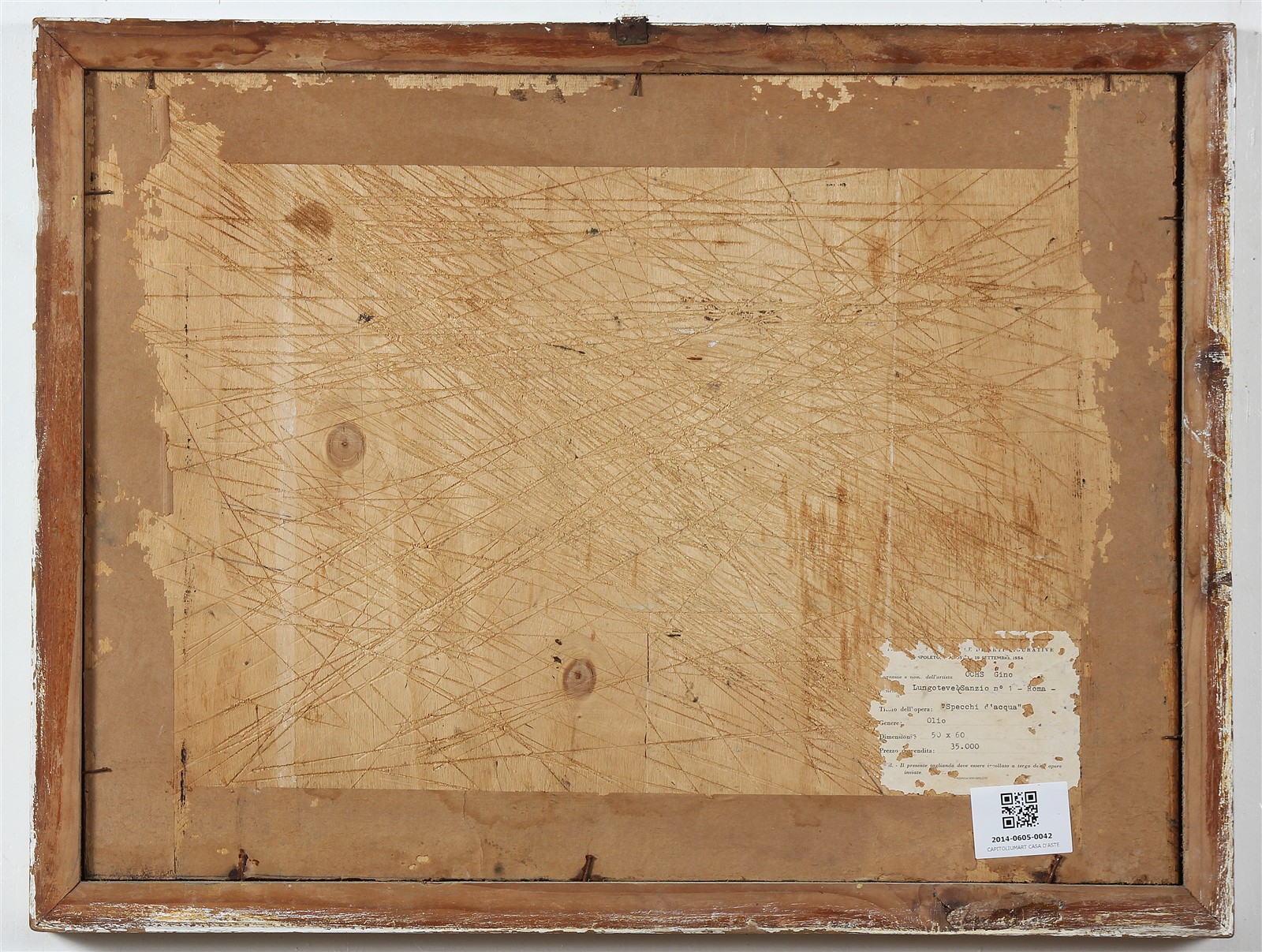 OCHS GINO (XX SEC.) Specchi d'acqua. 1970. Olio su tavola. Cm 60,00 x 50,00. Firma in basso a destra. Al retro cartiglio descrittivo. Cornice presente