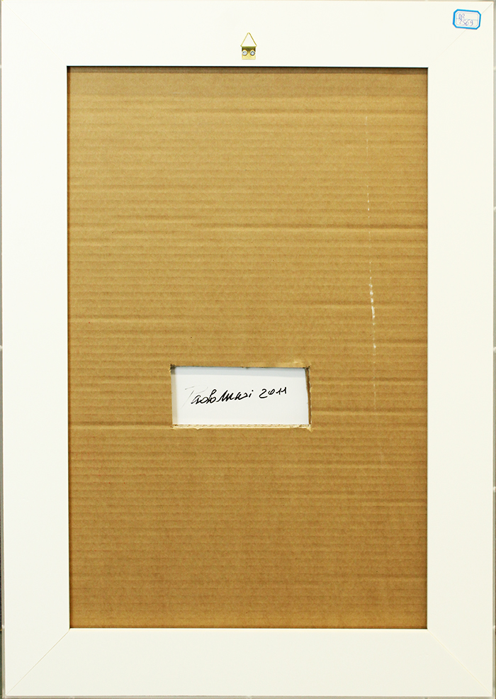 PAOLO MASI "Senza Titolo", 2011, tecnica mista su cartone ondulato, cm 70x50, con teca in plexiglass cm 71x51x3 kg 2,75. Al verso firma e anno centrale. Opera con autentica dell'artista e certificato di provenienza Daliano Ribani Arte.