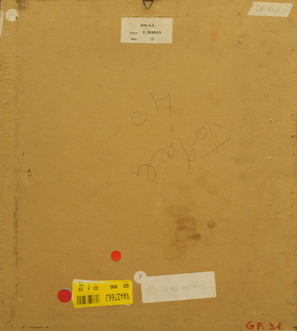 EUGENE BERMAN, anni '40, disegno su carta, cm 28x23, con cornice 46x40x2 cm, 1 kg. Al fronte: sigla d'artista al centro. Presenta 4 macchiette ai lati dell'opera. Opera con certificato di provenienza della Daliano Ribani Arte. Opera con cornice.