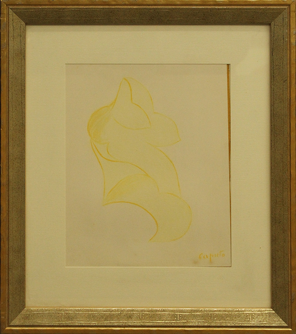 TONINO CAPUTO, anni '80, pastelli su carta, 30x24 cm, con cornice 46x41x2,5 cm, 1 kg. Al fronte: firma in basso a destra. Opera con certificato di provenienza della Daliano Ribani Arte. Opera con cornice.