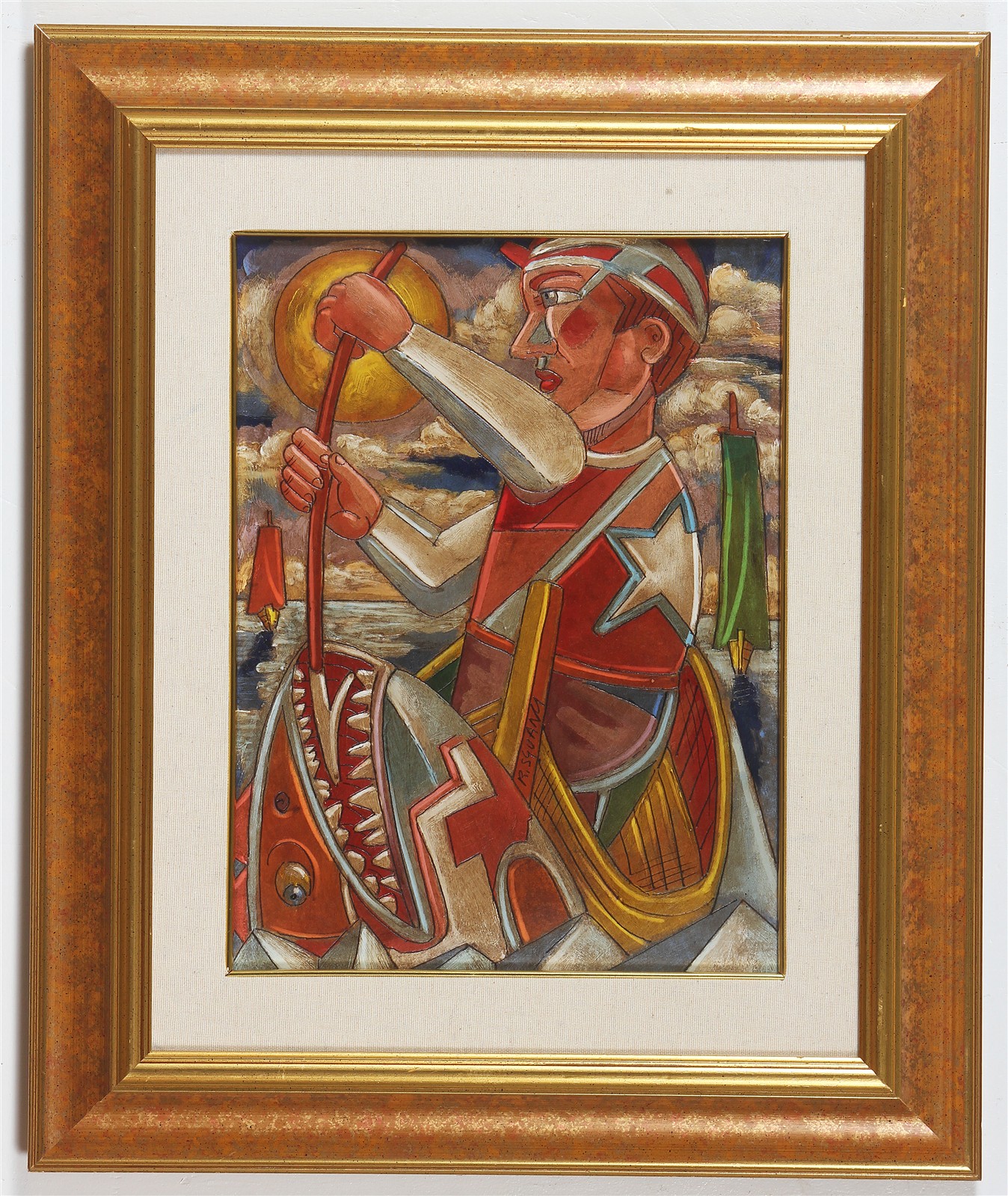 SGUANCI ROBERTO (n. 1948) Pescatore di tonni. Olio su cartone telato. Cm...