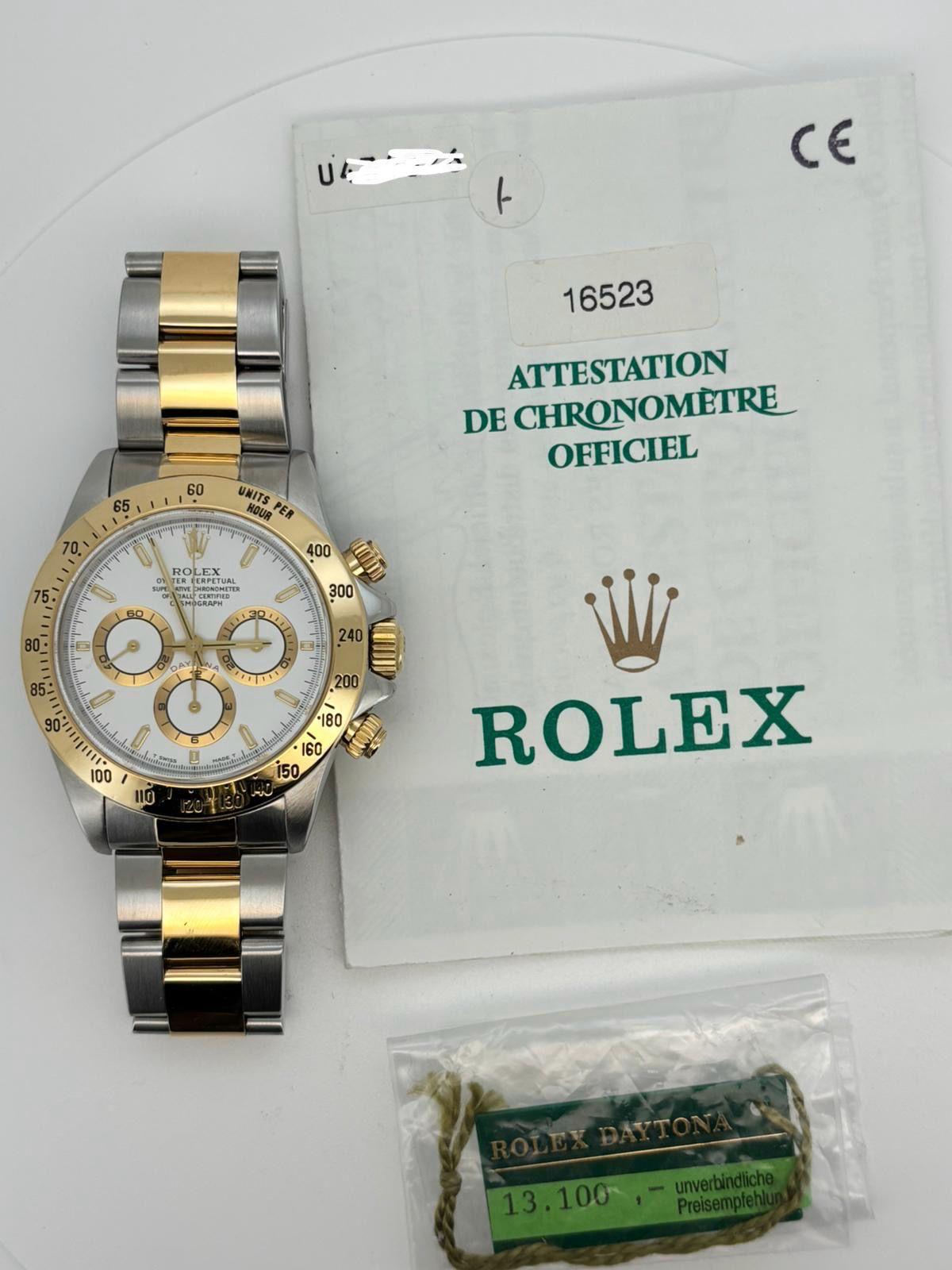 Marca Rolex Modello (Orologio) Daytona Numero di referenza 16523 Carica Automatico Anno 1998 Materiale della cassa Oro/Acciaio Materiale cinturino Oro/acciaio Corredo documenti originali, no box Carica Automatico Cassa Materiale della cassa Oro/Acciaio Diametro 40 mm Impermeabile 10 ATM Materiale lunetta Oro giallo Vetro Vetro zaffiro Cinturino Materiale cinturino Oro/acciaio Colore cinturino Oro/acciaio Chiusura Déployante Materiale chiusura Oro/Acciaio Quadrante bianco - COMMISSIONE D’ASTA 25%
