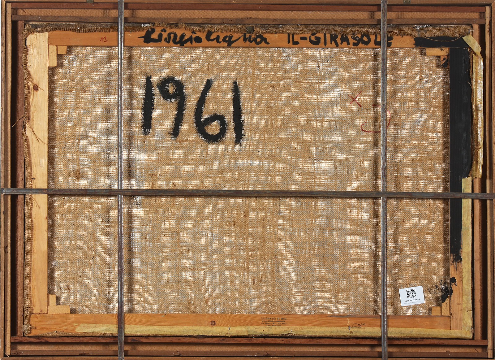 CIGNA GIORGIO (1939 - 2005) Il girasole. 1961. Tecnica mista su tavola. Cm 100,00 x 70,00. Al retro firma, anno e titolo. Cornice presente