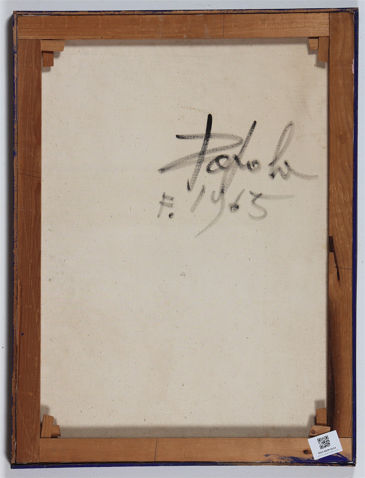 PAPOLA CLAUDIO (n. 1937) Senza titolo. 1965. Olio su tela . Cm 80,00 x 60,00. Firma in basso a destra. Al retro firma e titolo. Cornice presente