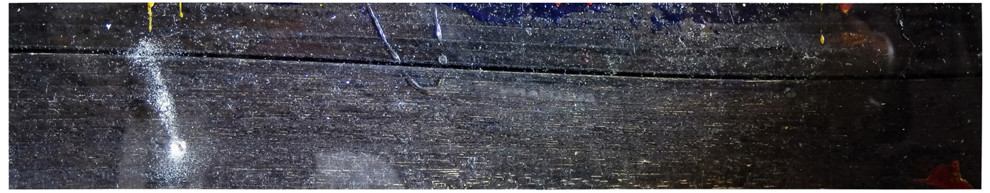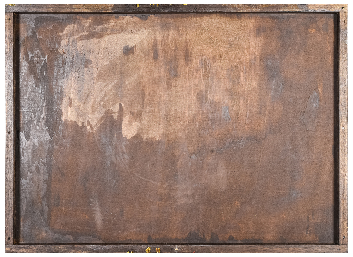 Stato di conservazione. Supporto: 90% (tarlatura sanificata nel 2021 mediante irradiazioni gamma e permetrina pura; crepe, fessure e danni da sfregamento all'involucro)