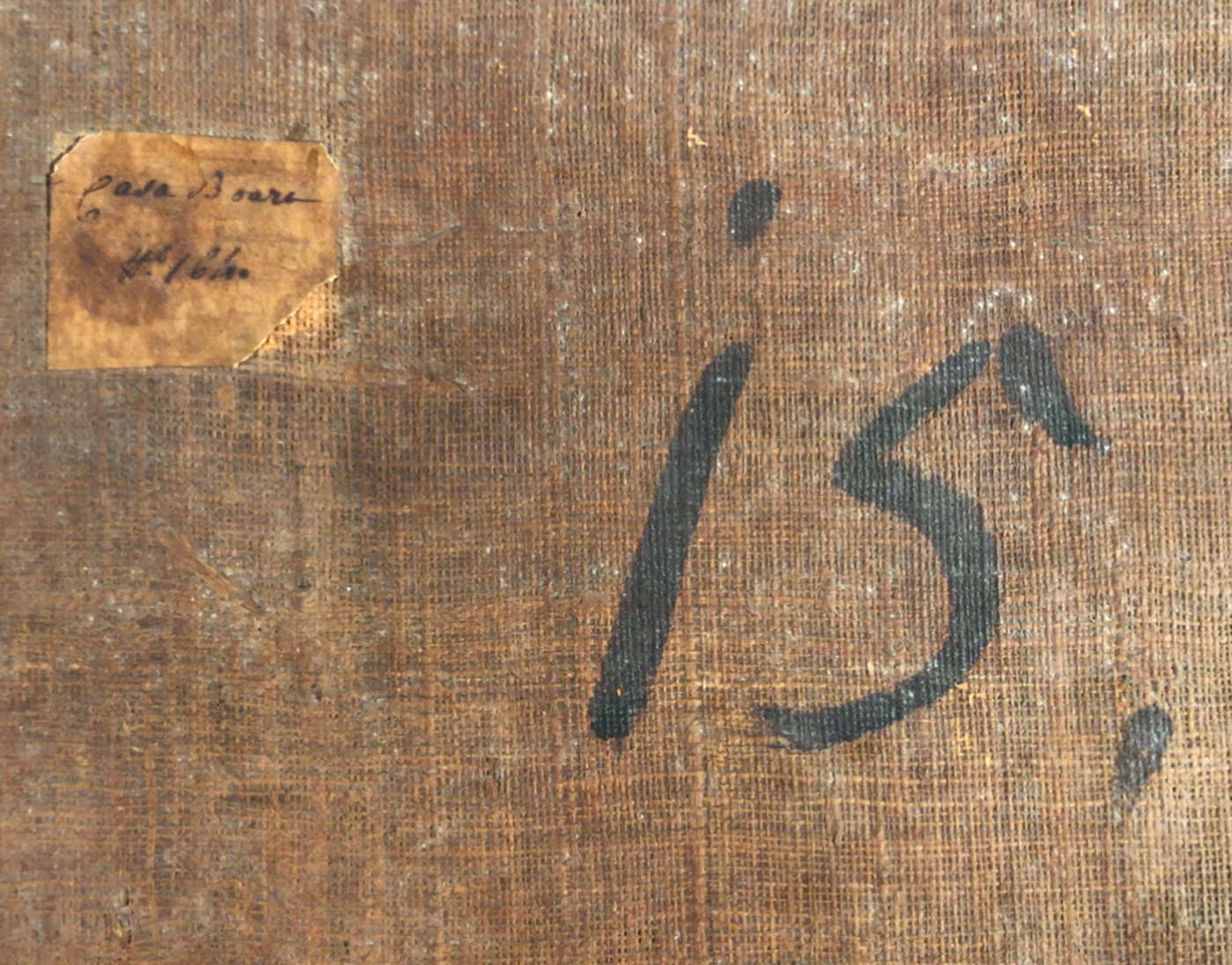 Elementi distintivi: Indicazione al verso della tela, etichetta "Casa Boar[?] 1640"; inoltre al retro della cornice etichetta della casa d’aste Semenzato con numero “460” e etichetta anonima con numero “303066”