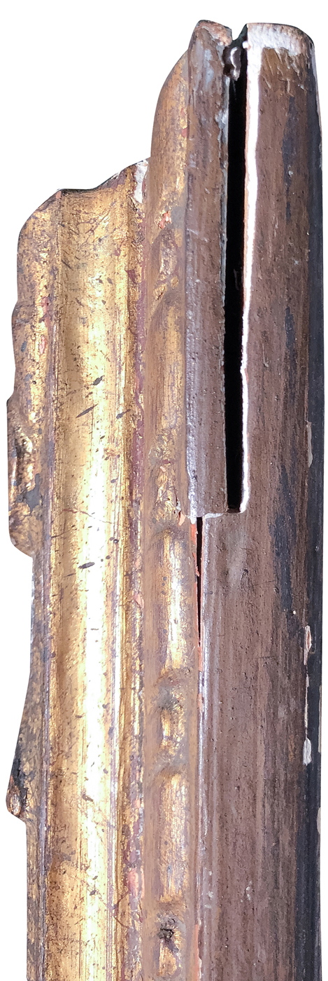 Stato di conservazione. Superficie: 70% (cadute di colore e integrazioni, anche sui volti delle figure e per delineare gli arti, per esempio, del pastore; importanti danni da urto e fratture alla cornice)