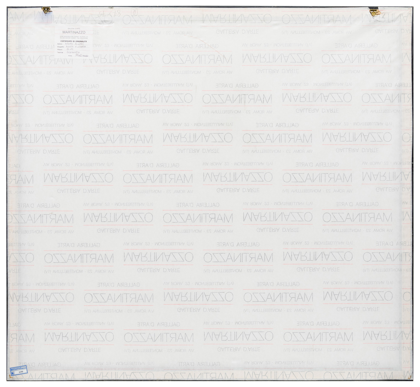 Elementi distintivi: sul verso, etichetta della Galleria d’Arte Martinazzo, Montebelluna; etichetta della Banca Popolare di Asolo e Montebelluna con riferimenti di inventario