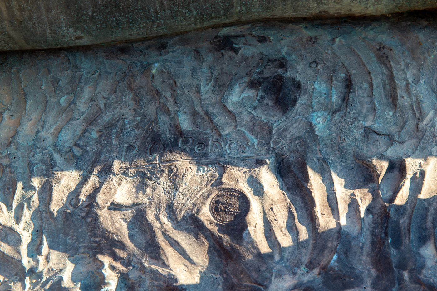 Firma: sulla base in bronzo, in fusione, "P. G. Rebesco"; sulla targa affissa al basamento, in fusione, "P. G. Rebesco"