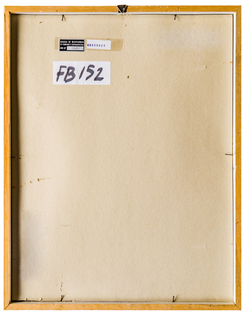 Elementi distintivi: sul verso, etichetta Cassa di Risparmio di Fabriano e Cupramontana con riferimenti di inventario