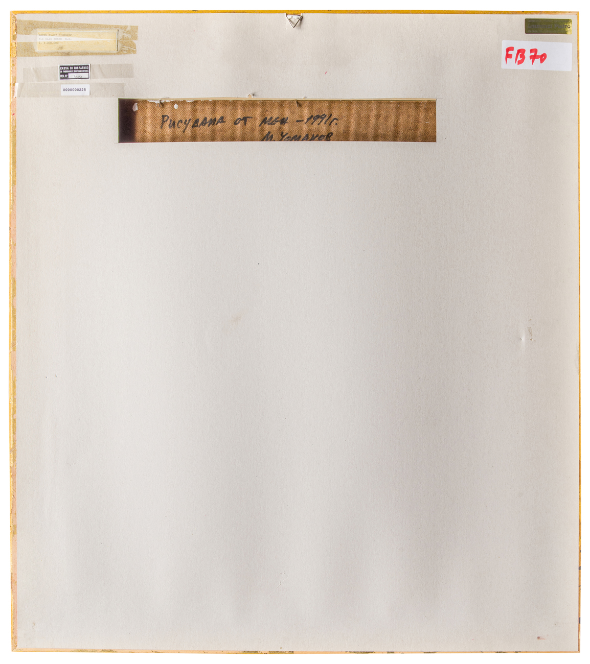 Elementi distintivi: sul verso, etichetta anonima con dati dell'opera; etichetta Cassa di Risparmio di Fabriano e Cupramontana con riferimenti di inventario