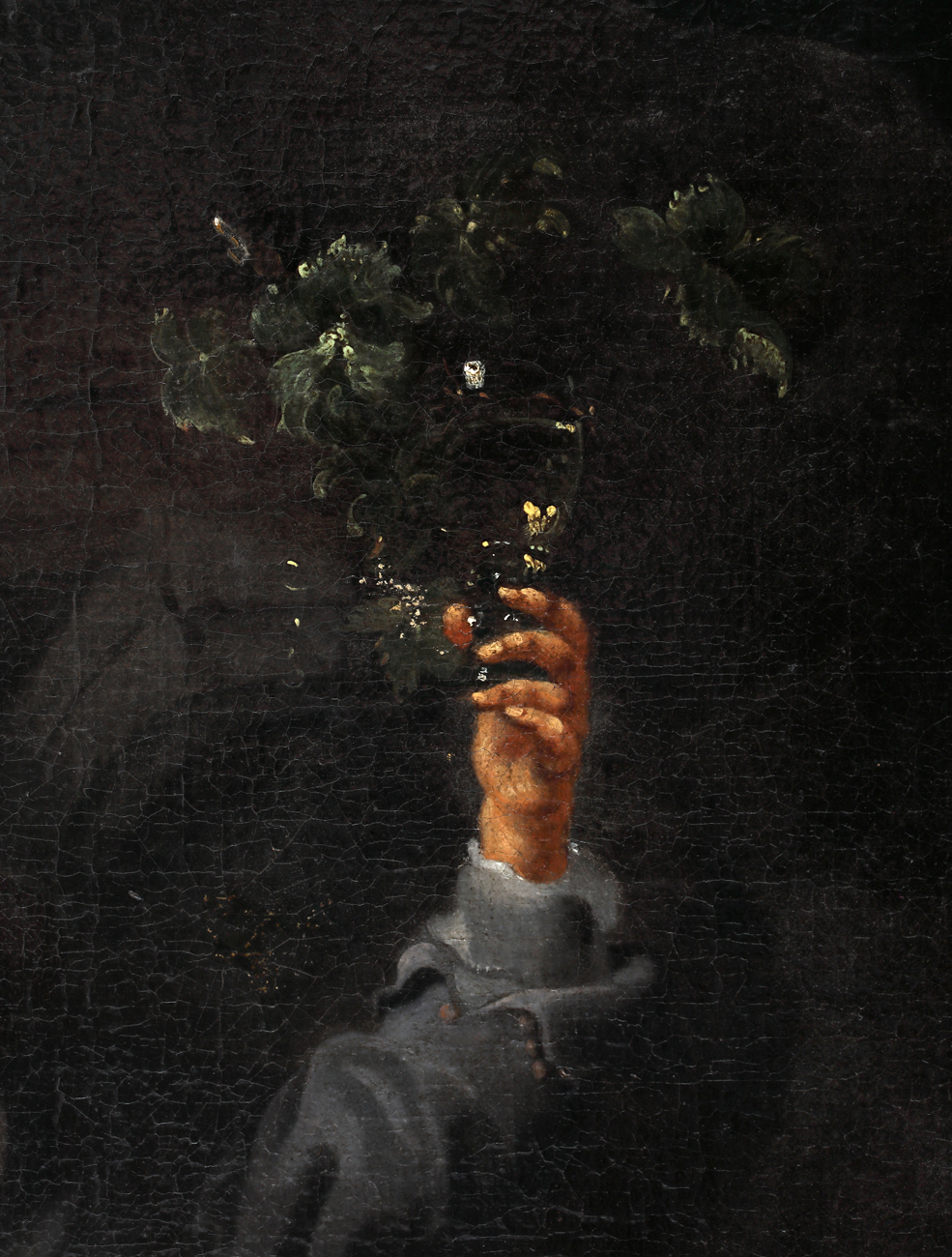 All’esame visivo diretto, svolto dalla casa d’aste, il livello qualitativo dell’opera, appare elevato: al punto da aver indotto in passato a ritenerla ascrivibile direttamente a Willem van Herp, da ultimo nella approfondita scheda di Mario Scippa (con valutazione di € 20.000-25.000). La pittura di Van Herp, soprattutto negli anni Sessanta, è in genere più pastosa, in emulazione dello stile di Rembrandt, mentre nel dipinto in esame, la stesura appare in generale più liquida. Inoltre, le anatomie sono semplificate, attraverso una riduzione della volumetria (forse accentuata dalla spulitura delle sfumature) e dei dettagli (volti, arti, mani) mentre la composizione si concentra sulla scena centrale, accentuando l’ombreggiatura delle zone marginali fino a rendere quasi non riconoscibili i rilevanti elementi – per esempio, la sedia a sinistra, il personaggio accosto al muro a destra, che sono invece perfettamente visibili nella incisione della tela ex Bute. Vi sono tuttavia dettagli come la testa del cane di sinistra, o alcuni dettagli dei vasi in ceramica e dei vetri che mostrano uno stacco di stile rispetto alle figure e confermano l’intervento di più mani, di diversa abilità, confermando l’ipotesi di una opera eseguita nella struttura collaborativa della bottega.