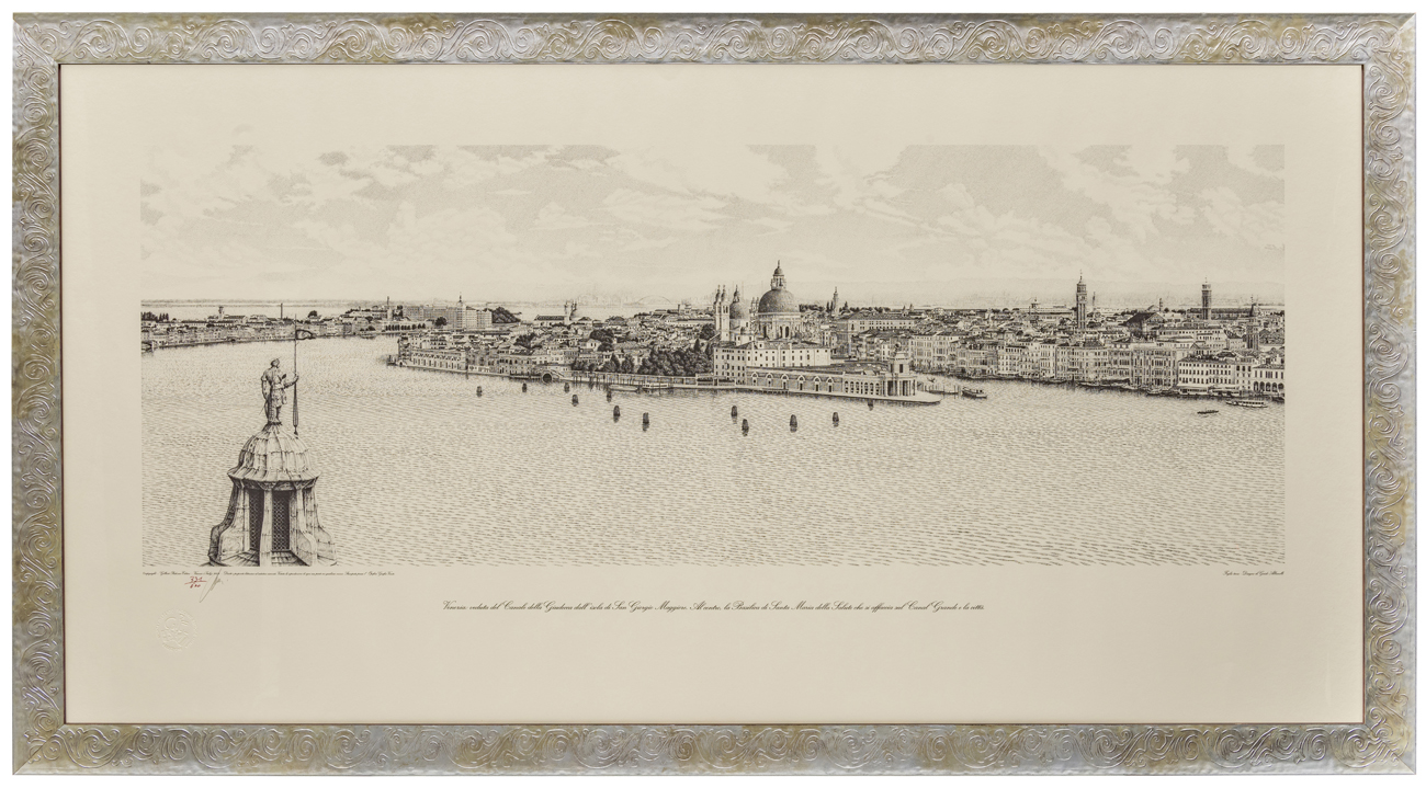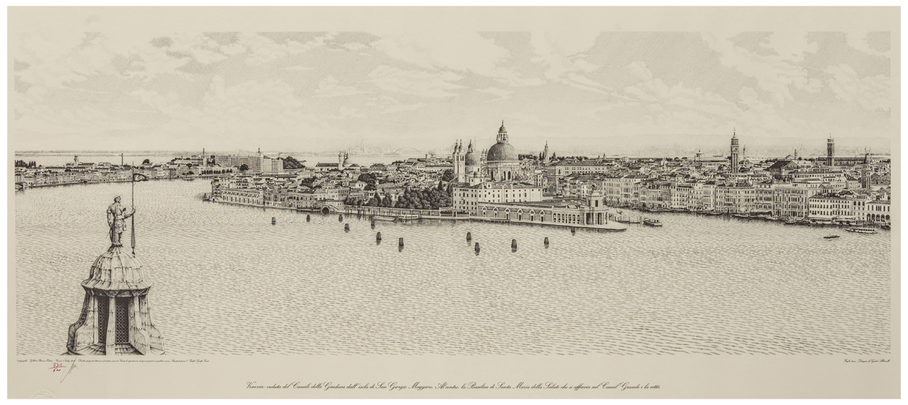 La tavola è parte di un nucleo che compone una veduta di Venezia a 360 gradi, complessivamente lunga 9,80 metri, ma divisa in sette parti per praticità di stampa. Il disegno è stato realizzato con pennino ed inchiostro di china nero e dunque riprodotto con stampa a tiratura limitata, dall'editore Gilberto Padovan, Vicenza (comunicazione dell'artista del 16 dicembre 2020).