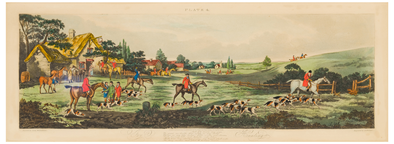 Insieme al lotto, una seconda stampa, raffigurante una battuta di caccia alla volpe (luce: 38,9x88,4 cm.; cornice: 45,6x95,4x2,3 cm.)