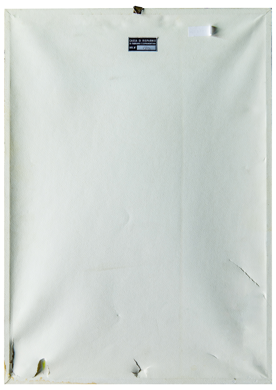 Elementi distintivi: sul verso, etichetta Cassa di Risparmio di Fabriano e Cupramontana con riferimenti di inventario e etichetta analoga anonima e poco leggibile