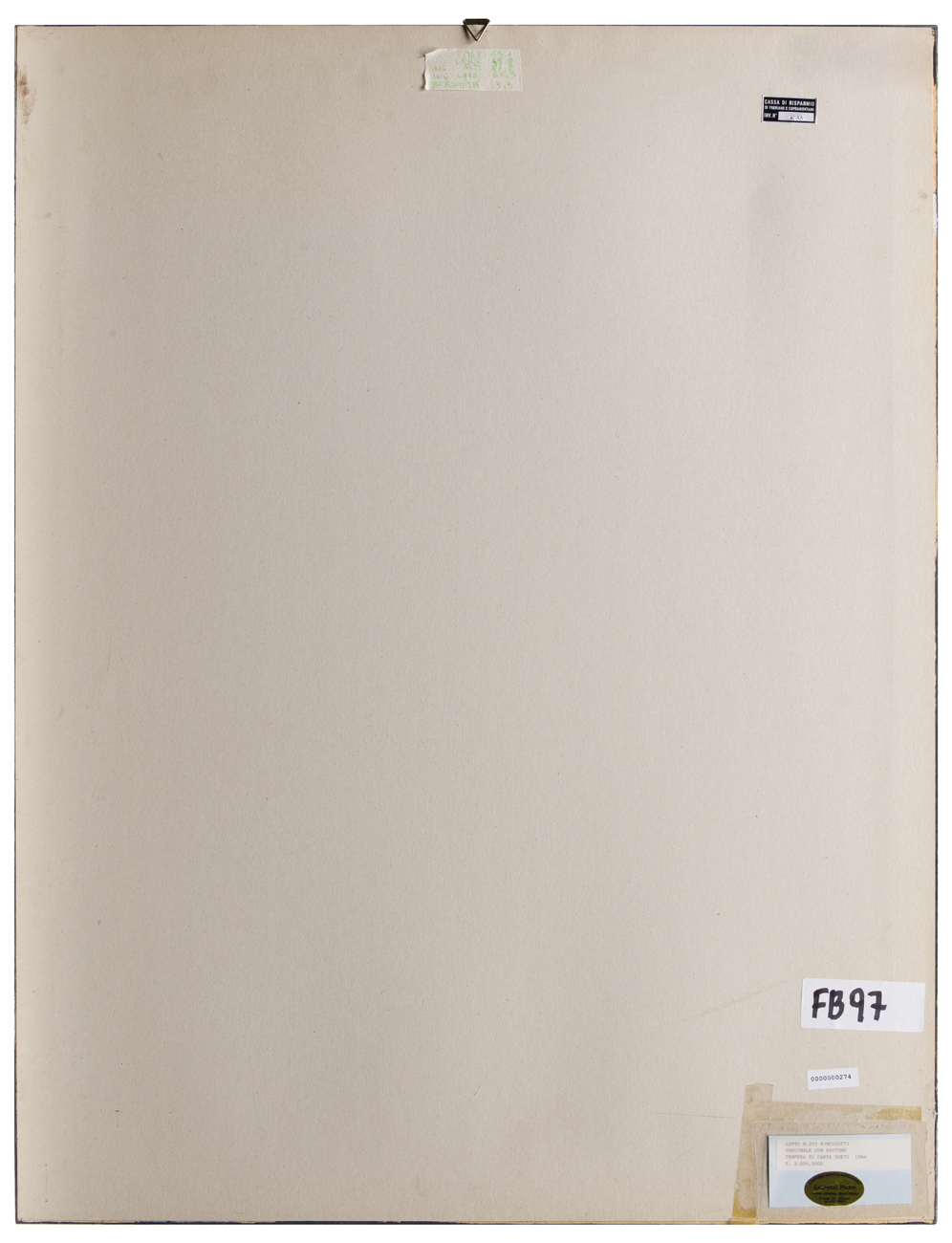 Elementi distintivi: etichetta Cassa di Risparmio di Fabriano e Cupramontana con riferimenti di inventario; etichetta anonima con dati dell'opera