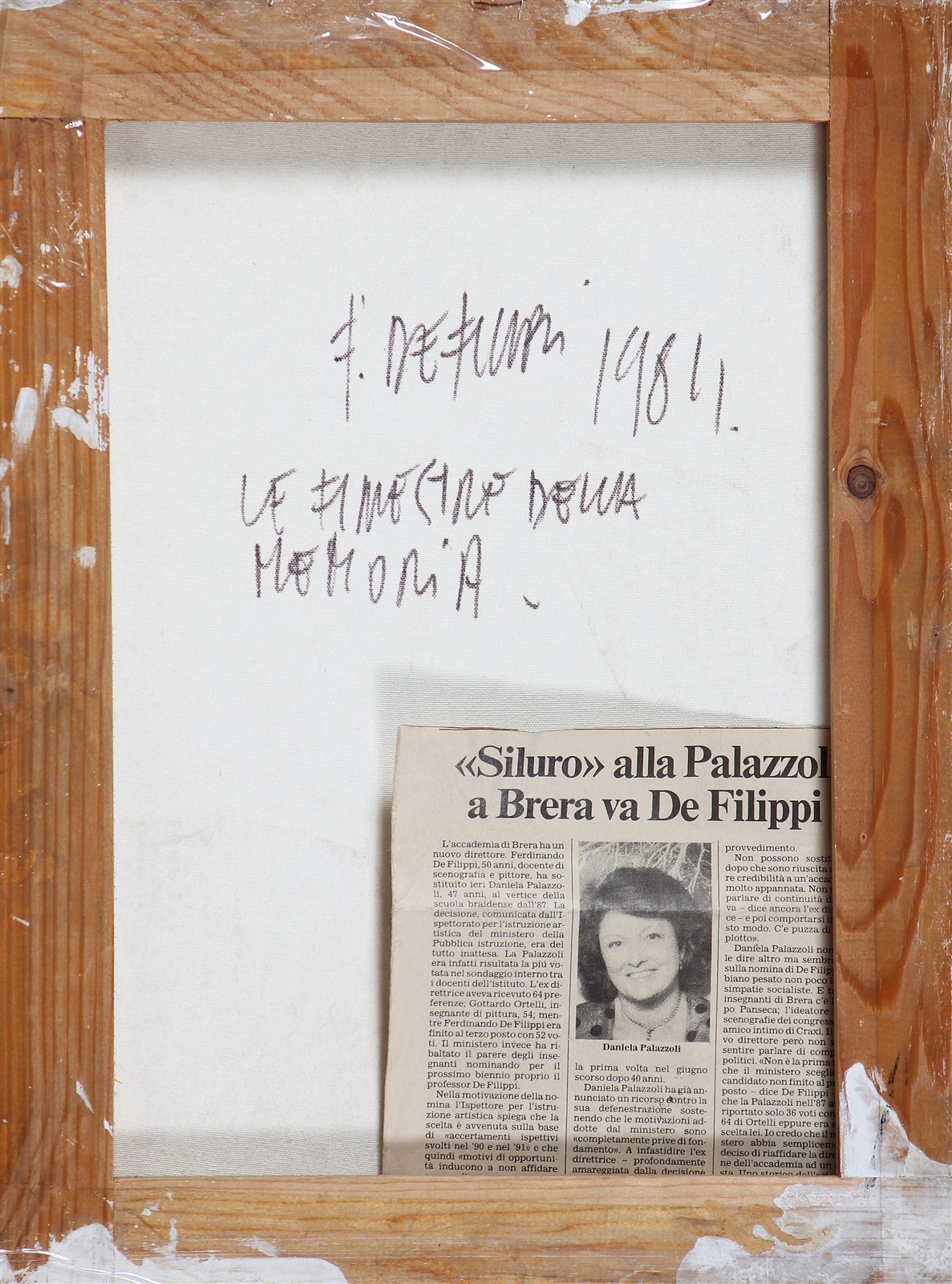 DE FILIPPI FERRUCCIO (n. 1943) Finestra della memoria. 1981. Olio su tela . Cm 51,00 x 69,00. Al retro titolo, firma e anno.