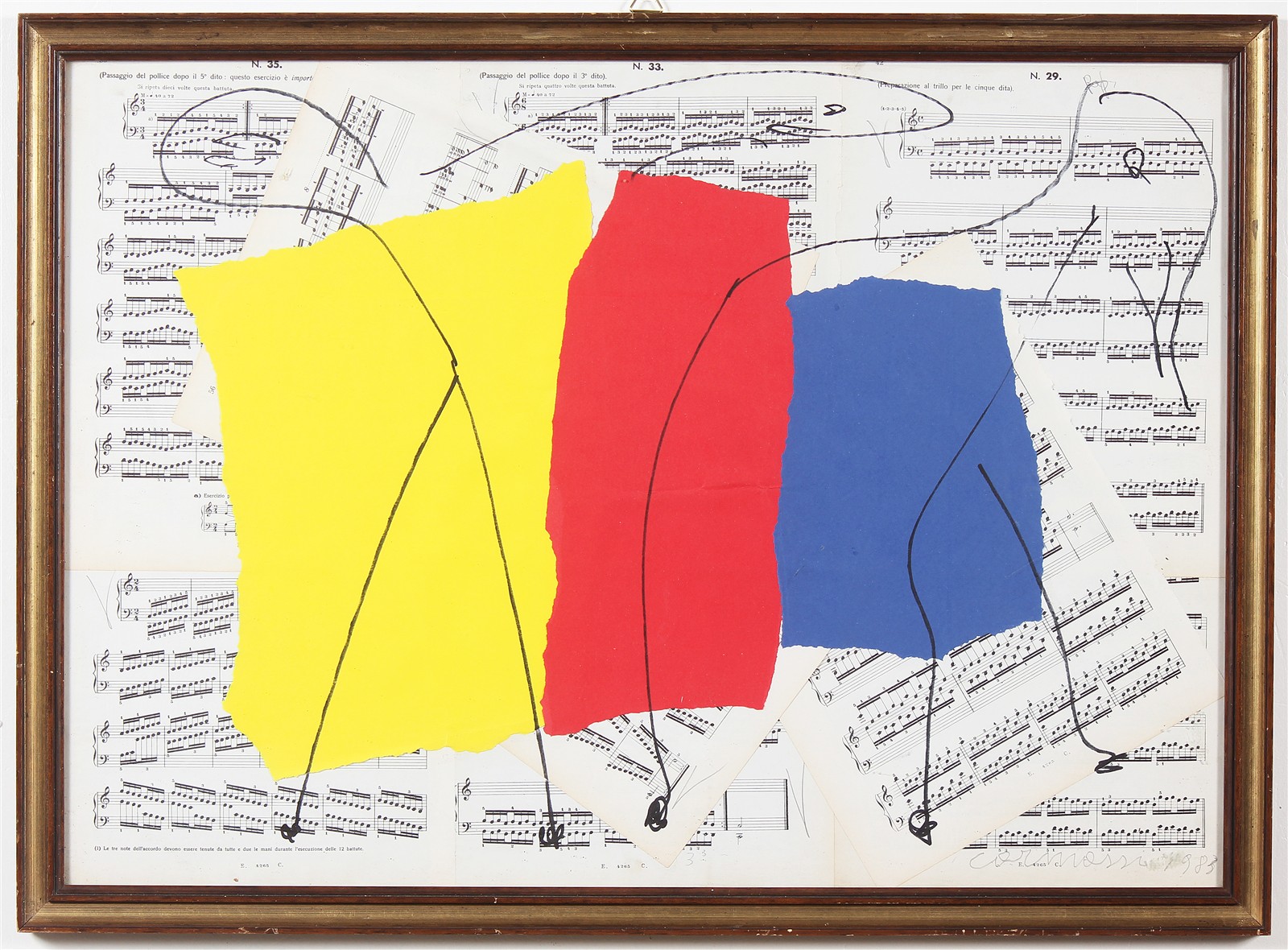 CARMASSI ARTURO (n. 1925) Senza titolo. Tecnica mista e collage su cartone. Cm 69,00 x 49,00. Autentica dell' artista su fotografia. Cornice presente