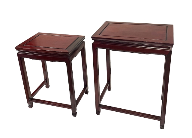 Tavolini coordinati e allungabili in mogano.