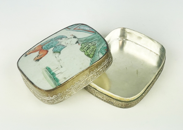 Antico cofanetto cinese in metallo e smalto, inizi del XX secolo.