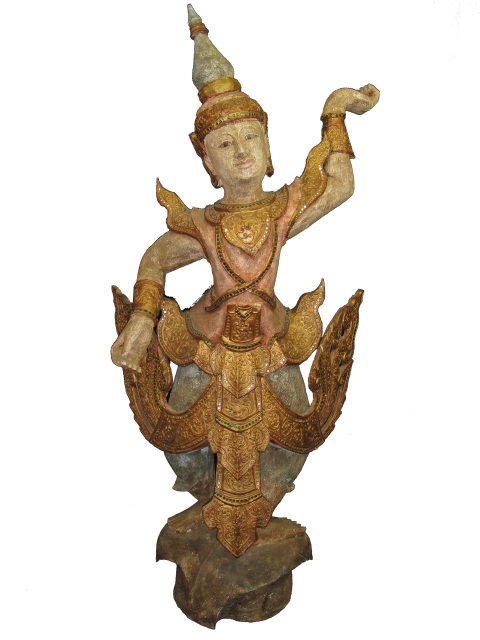 Scultura in legno raffigurante una dea danzante, Asia, presumibilmente Thailandia, seconda metà del XX secolo.