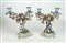 Coppia di candelabri in porcellana policroma di Capodimonte e bronzo dorato,...