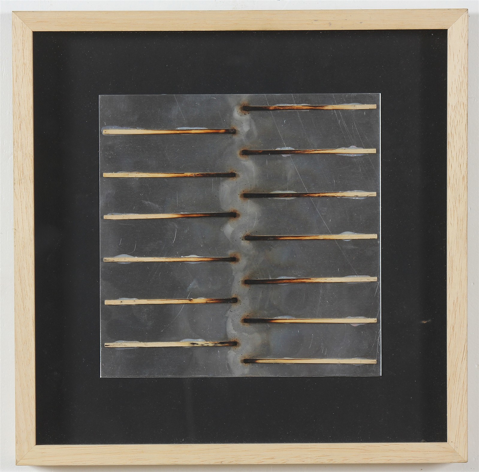AUBERTIN BERNARD (n. 1934) Senza titolo. Fiammiferi su lamiera. Cm 50,00 x 37,00. Firma e anno al retro. Cornice presente