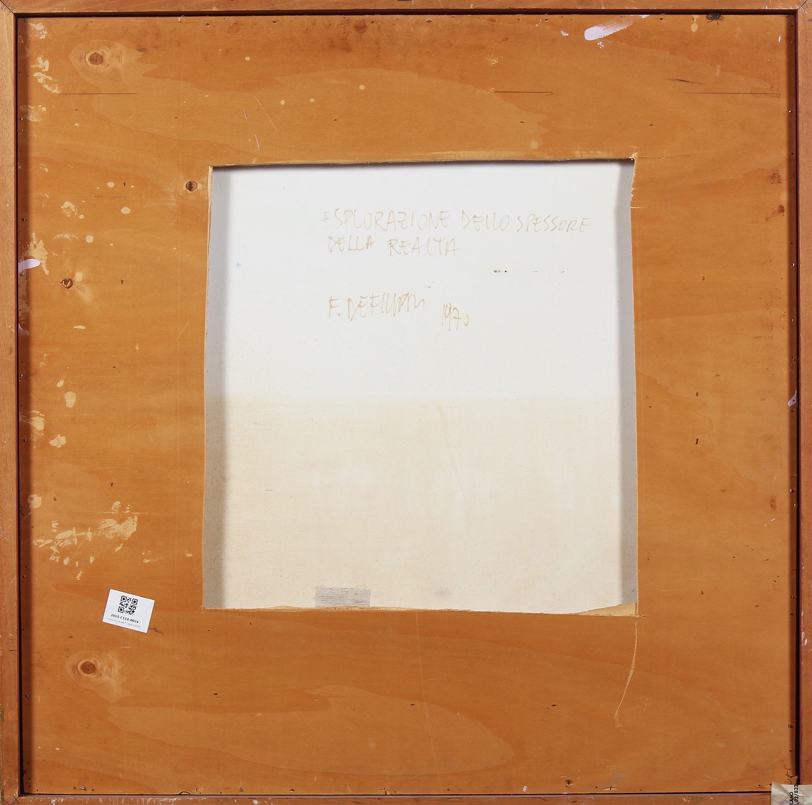 DE FILIPPI FERNANDO (n. 1940) Espressione dello spessore nella realtà. 1970. Olio su tela . Cm 70,00 x 70,00. Al retro titolo, firma e anno. Cornice presente