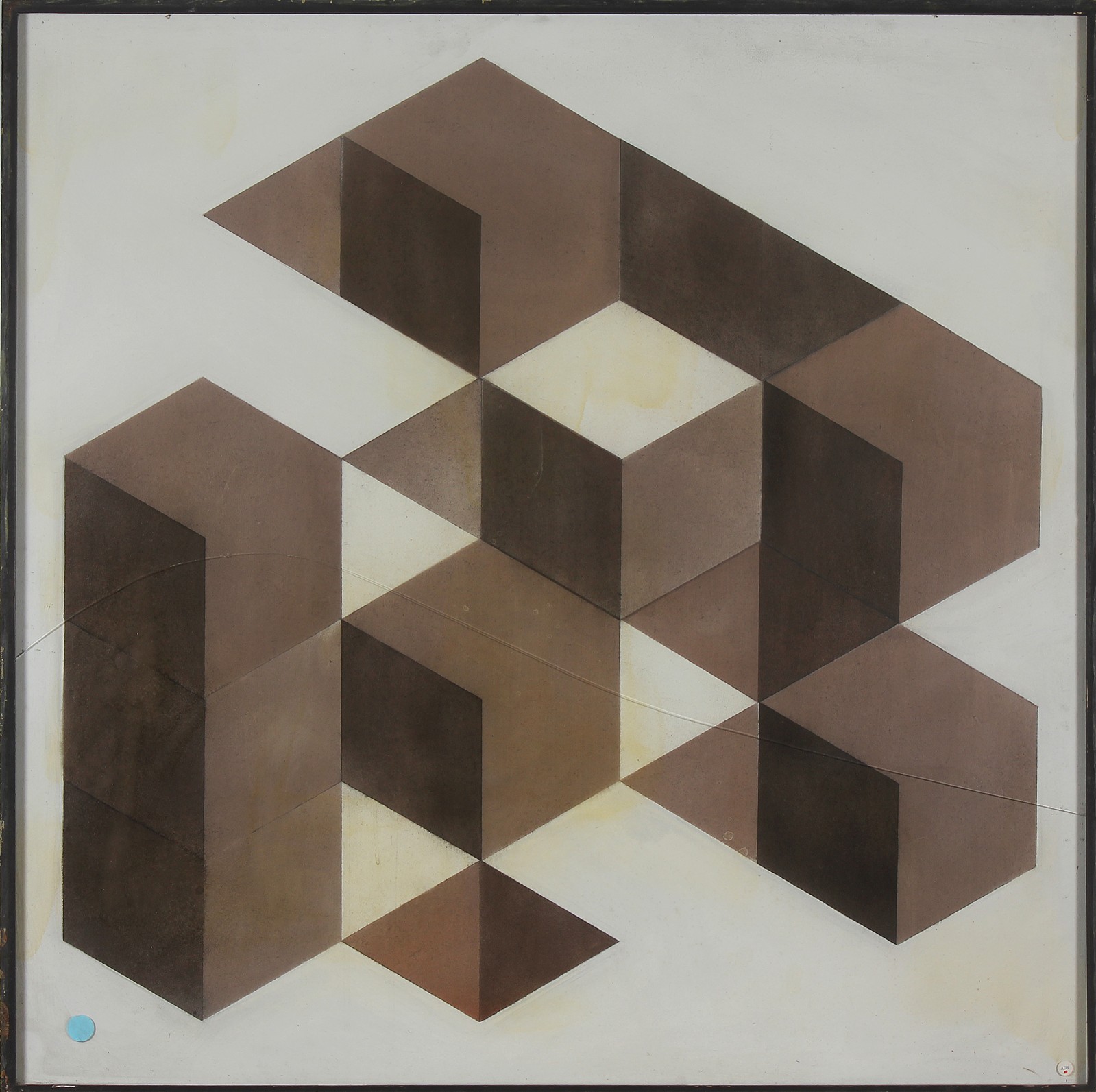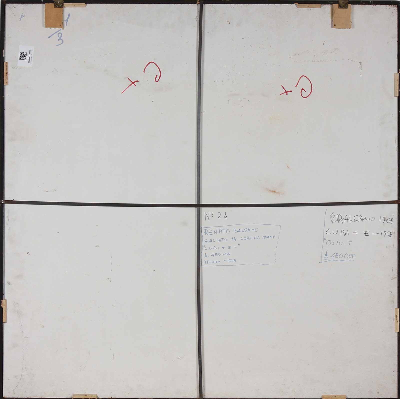 Lotto 628 | BALSAMO RENATO (n. 1937) Cubi + E-. 1968. Tecnica mista su tavola. Cm 100,00...