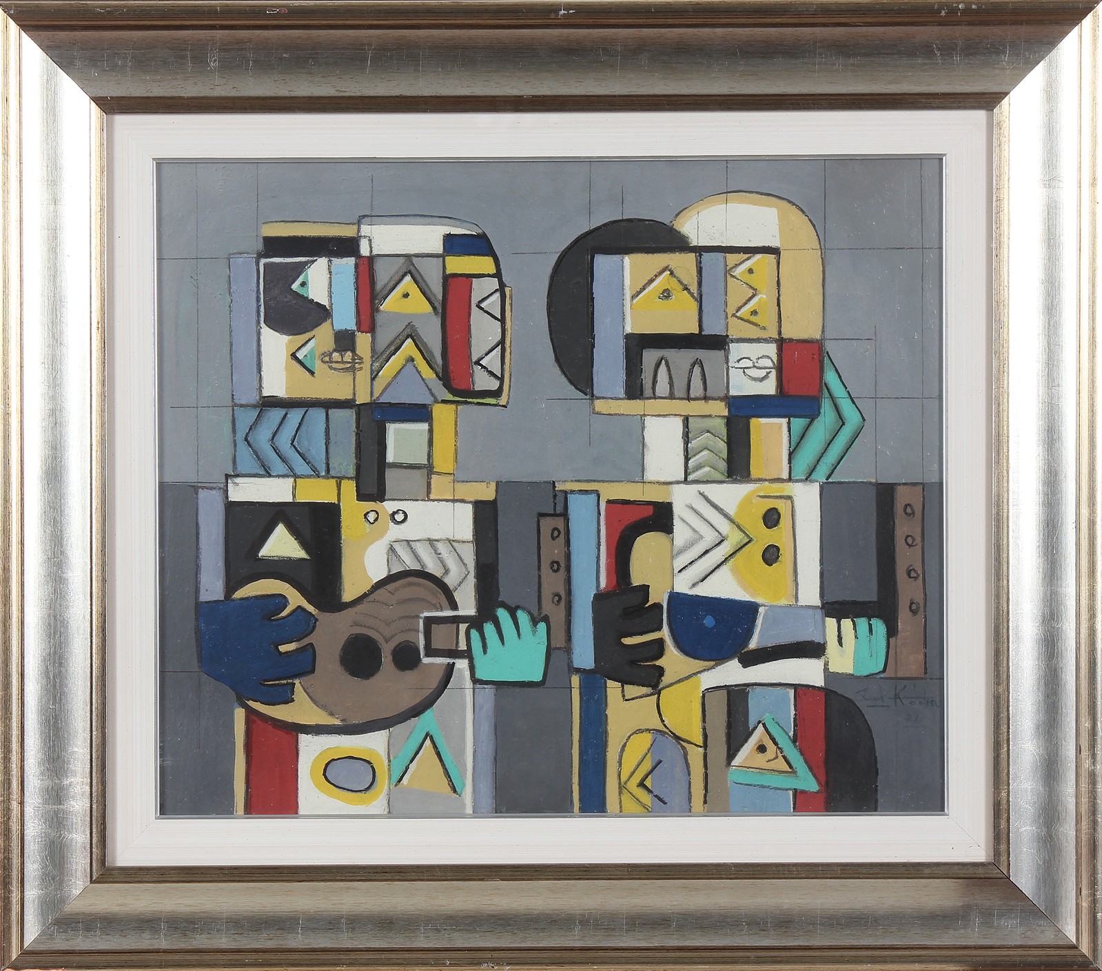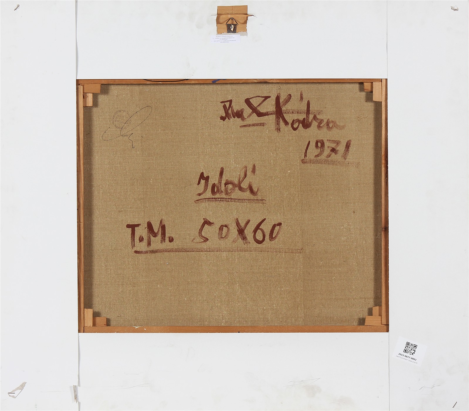 KODRA IBRAHIM (1918 - 2006) Idoli. 1971. Olio su tela . Cm 60,00 x 50,00. Firmato, datato e titolato al retro. Autentica dell'artista su fotografia. Firmato in basso a destra.