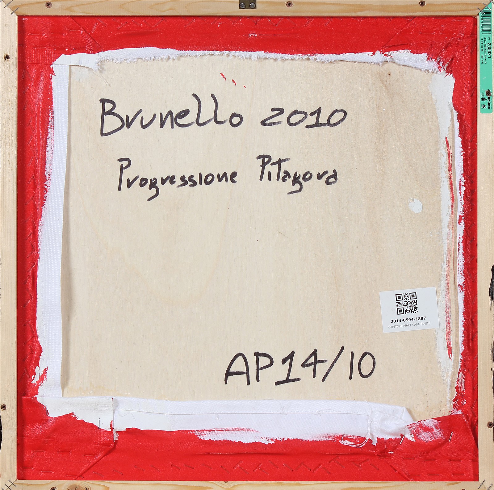 BRUNELLO Progressione pitagora. Opera su tela estroflessa. Cm 50,00 x 50,00. Firma anno e titolo al retro. Autentica dell' artista su fotografia.