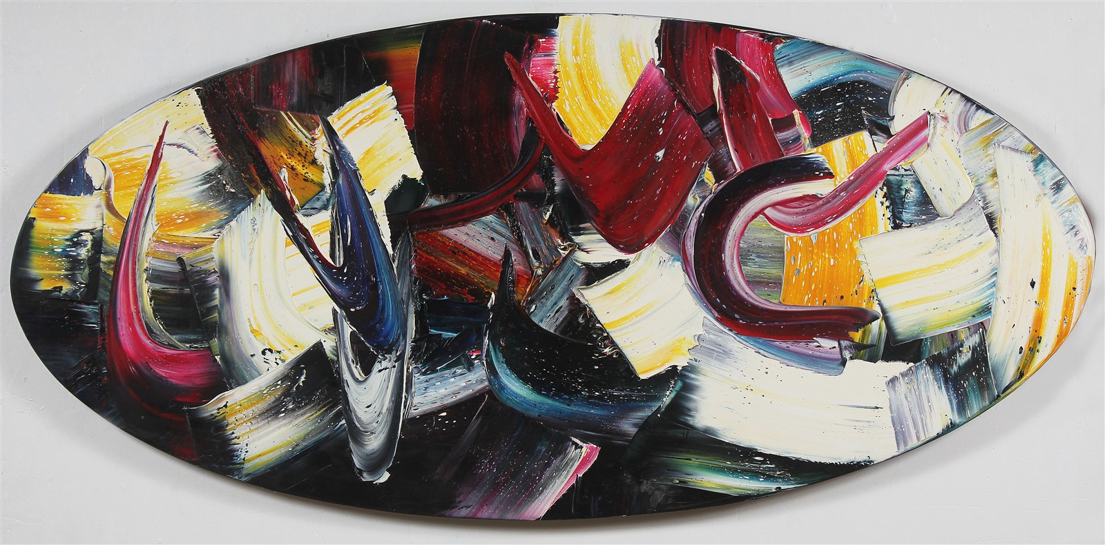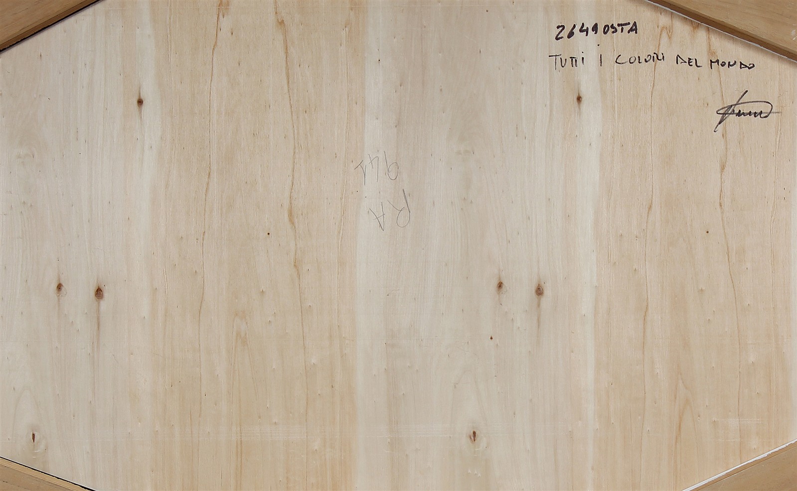 DE LUTTI PIERLUIGI (n. 1959) Tutti i colori del mondo. Olio su tavola. Cm 150,00 x 70,00. Firma e titolo al retro. Autentica dell'artista su fotografia.
