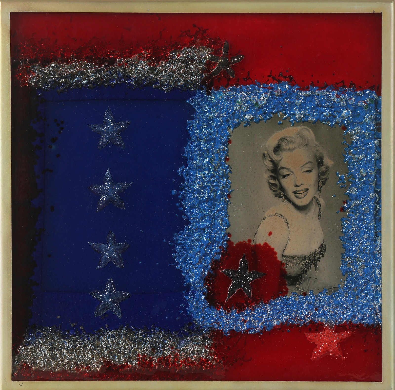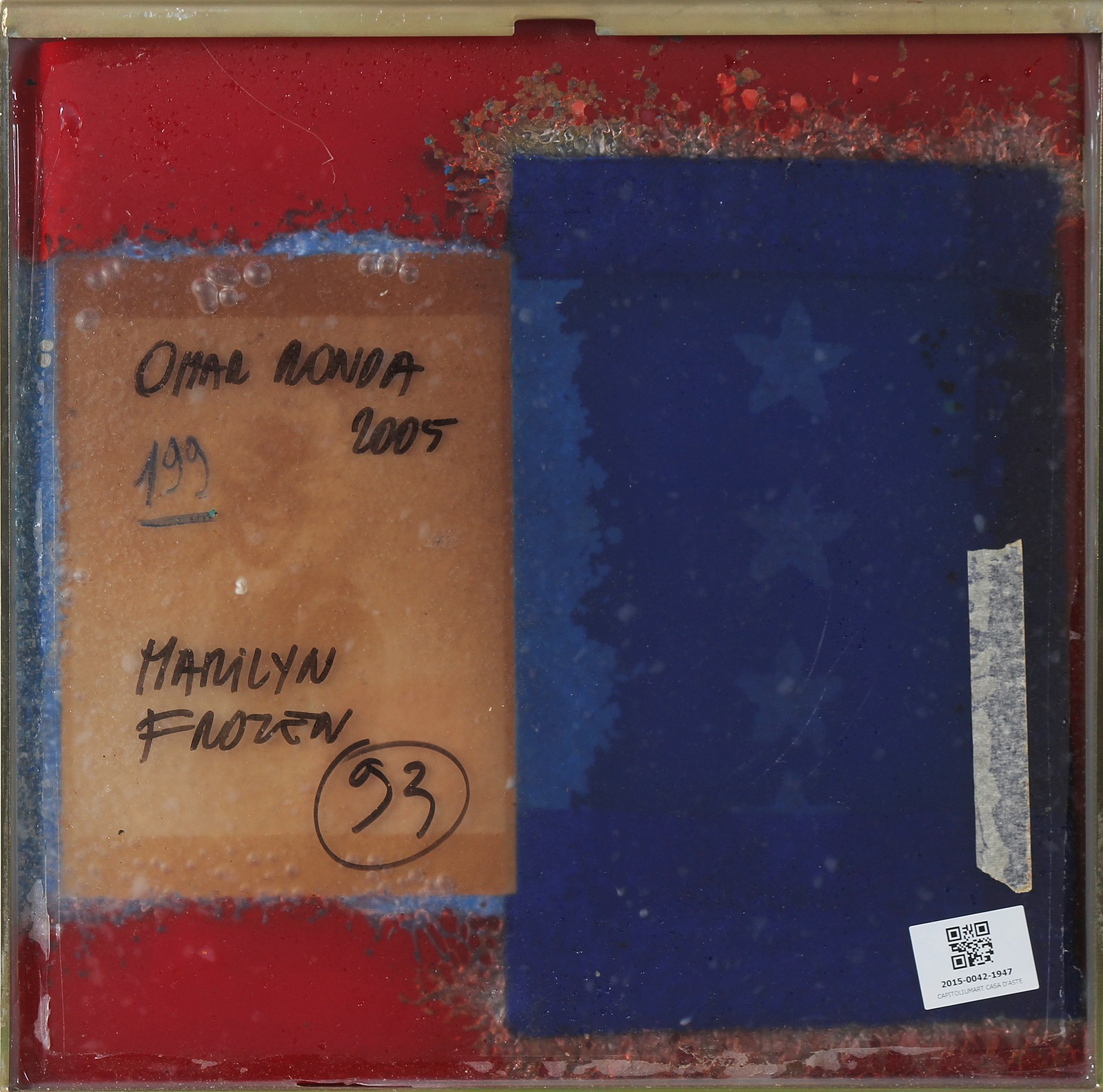 RONDA OMAR (n. 1947) Marilyn frozen. 2005. Plastica. Cm 50,00 x 50,00. Al retro titolo, firma e anno. Cornice presente