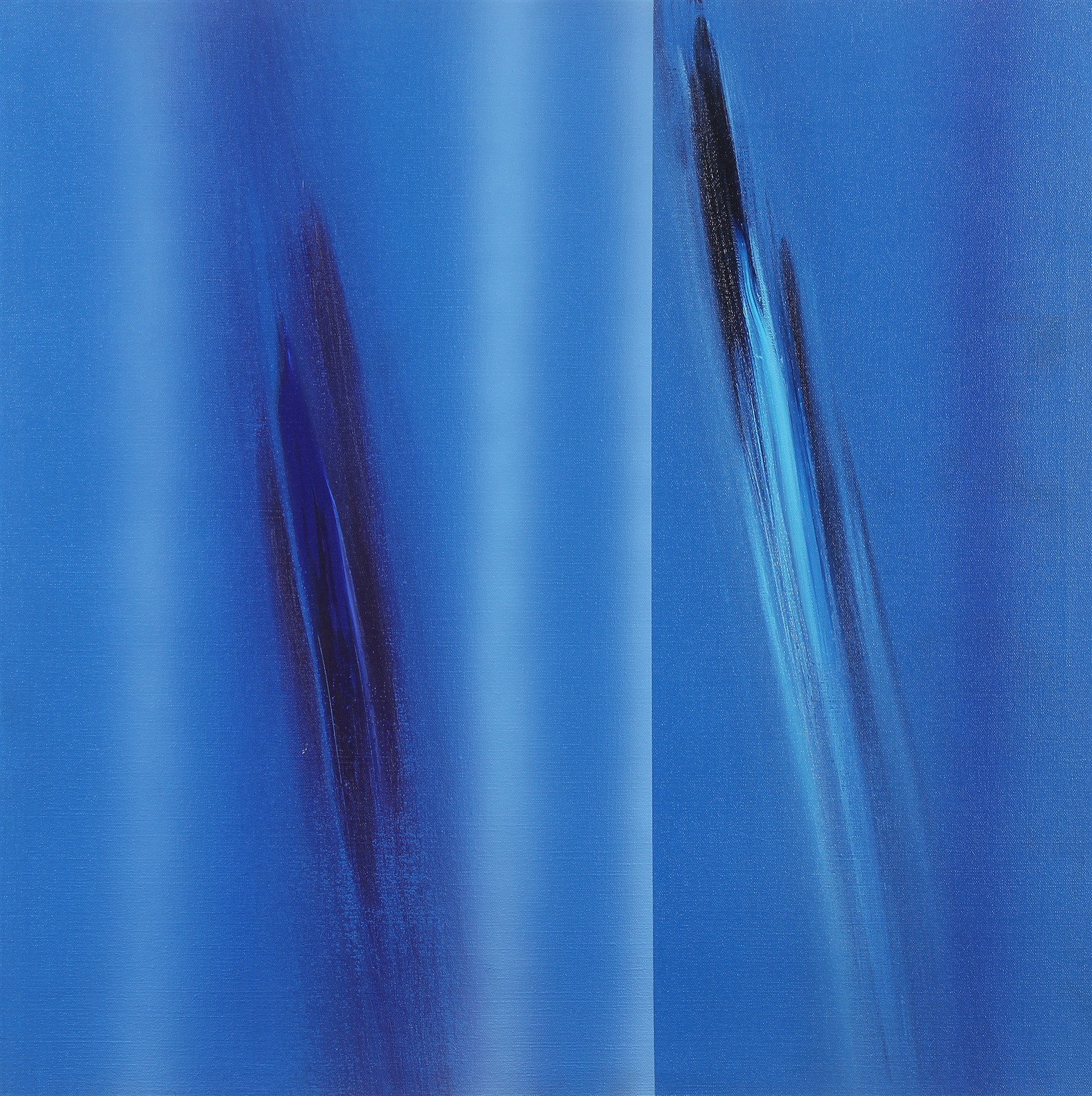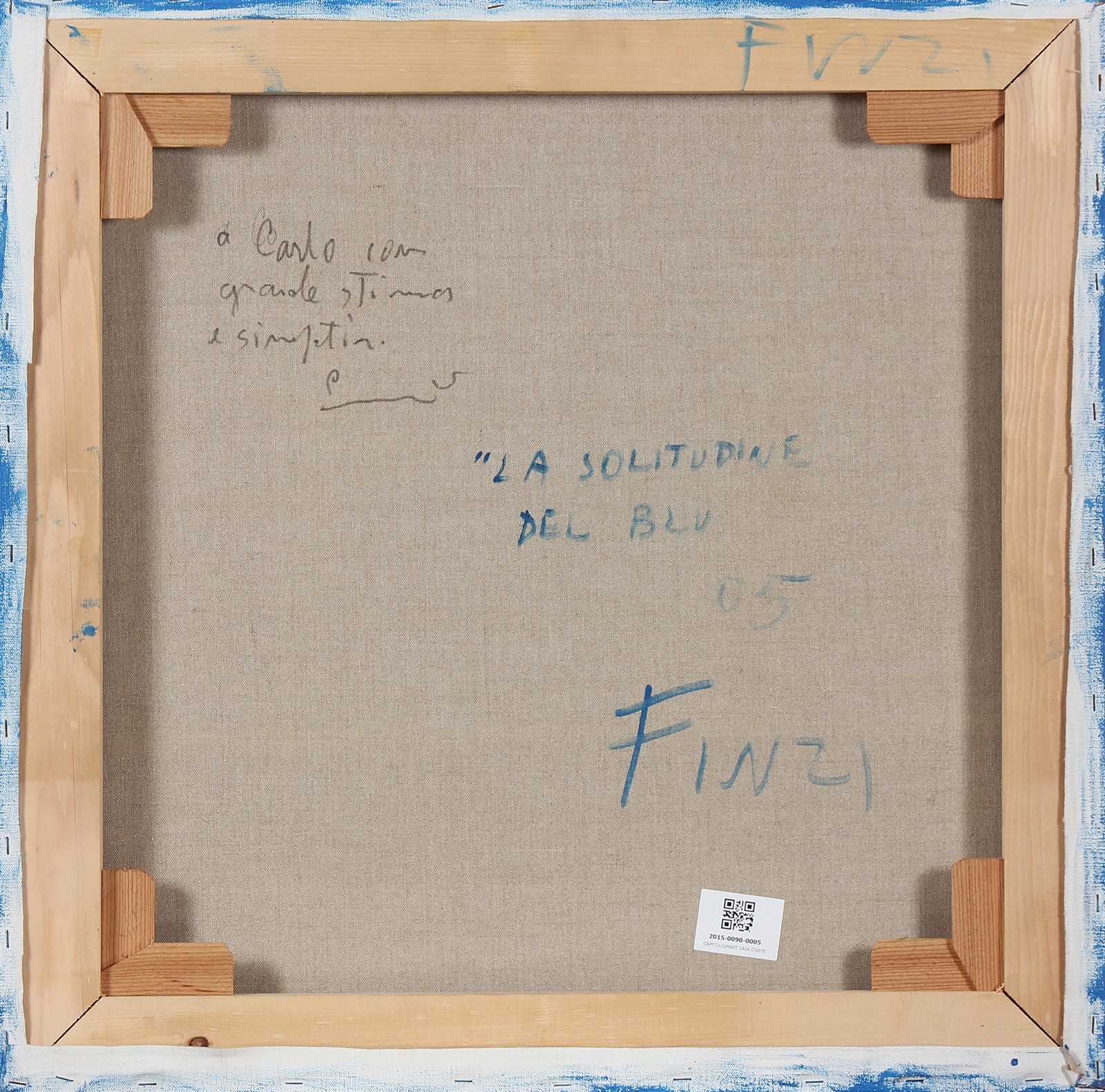 FINZI ENNIO (n. 1931) La solitudine del blu. 2005. Olio su tela . Cm 70,00 x 70,00. Titolo anno e firma al retro.