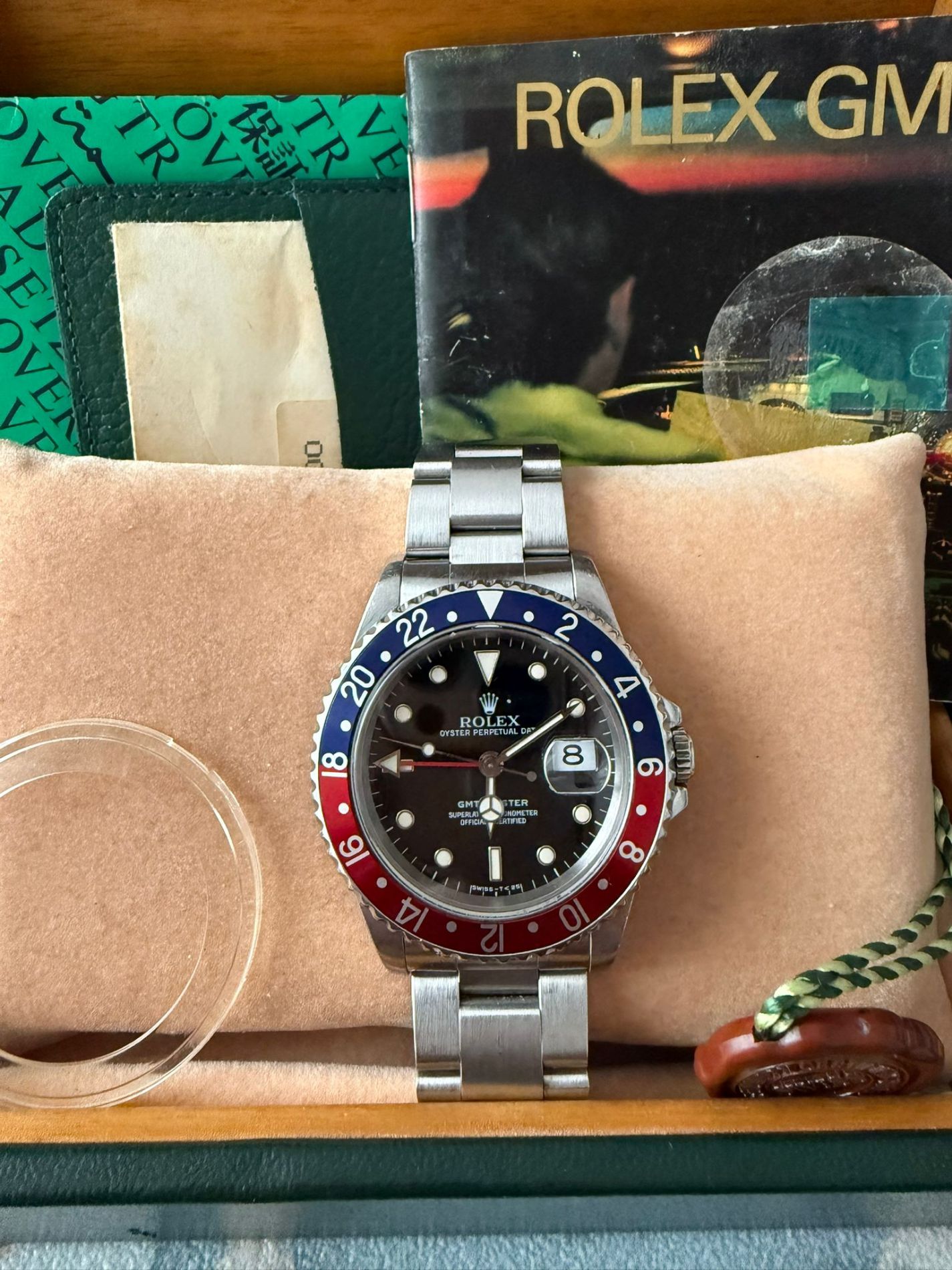 Marca Rolex Modello (Orologio) GMT-Master II Numero di referenza 16700 Carica Automatico Materiale della cassa Acciaio Materiale cinturino Acciaio Condizione Usato L'articolo presenta segni di usura lievi, come ad esempio graffi leggeri, ma non percepibili al tatto. documenti originali Rolex, no box la scatola utilizzata solo per fotografie non in vendita Carica Automatico anno 1996 Materiale della cassa Acciaio Diametro 40 mm Impermeabile 10 ATM Materiale lunetta Acciaio Vetro Vetro zaffiro Quadrante Nero Numeri sul quadrante Senza numeri Cinturino Materiale cinturino Acciaio Colore cinturino Acciaio Chiusura Déployante Materiale chiusura Acciaio Funzioni Data, GMT - COMMISSIONE D’ASTA 25%