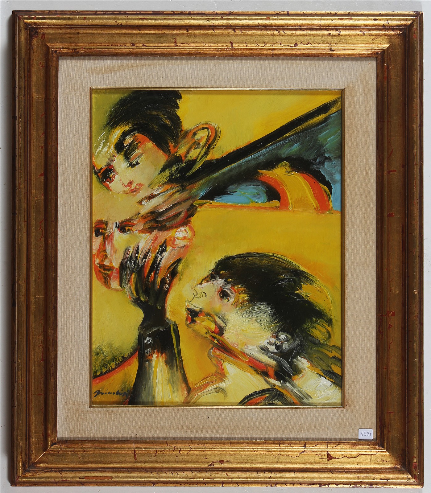 BRINDISI REMO (1918 - 1996) Figure. Olio su tela . Cm 50,00 x 40,00. Firma in basso a sinistra. Al retro firma per autentica. Autentica dell'artista su fotografia. Cornice presente