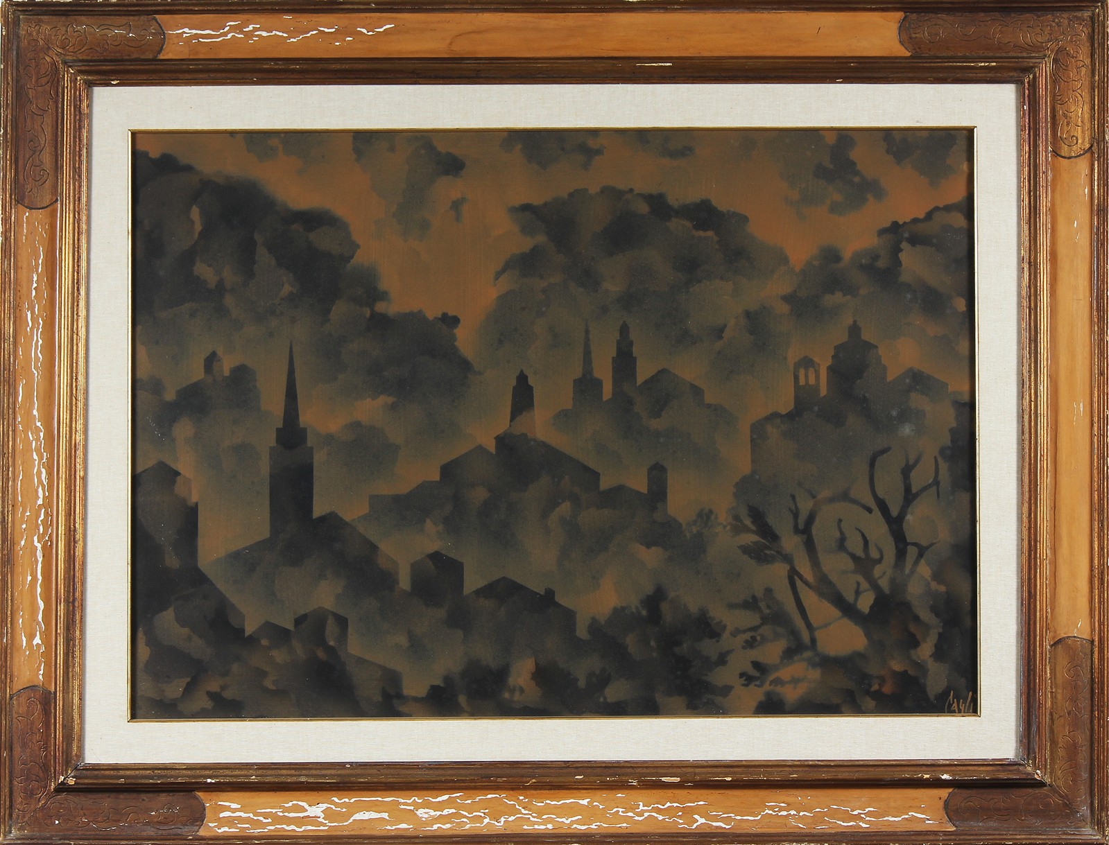 CAGLI CORRADO (1910 - 1976) Paesaggio. 1973. Olio su tela . Cm 70,00 x 100,00. Firma in basso a destra. Opera archiviata presso l'Archivio Corrado Cagli, Roma, come da documentazione fotografica allegata all'opera riportante il relativo numero d'inventario. Cornice presente