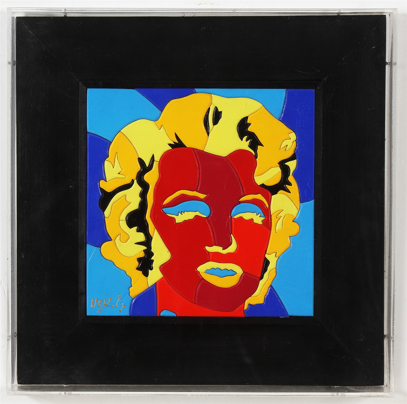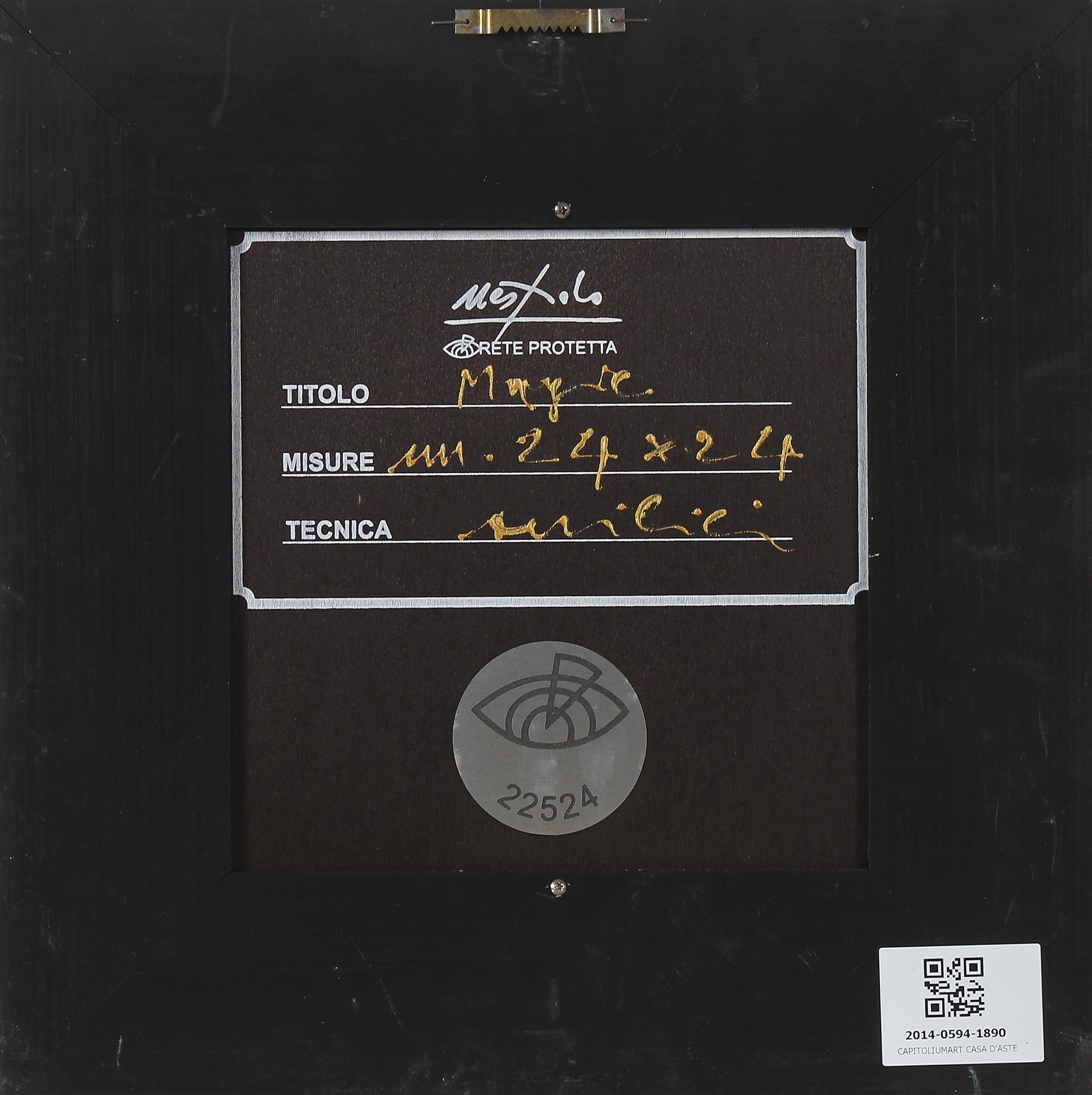 NESPOLO UGO (n. 1941) Magic. Acrilico su tavola. Cm 24,00 x 24,00. Firma in basso a sinistra. Al retro descrizione e placca in metallo dell'artista. Autentica dell' artista su fotografia riportante il relativo numero di inventario. Cornice presente