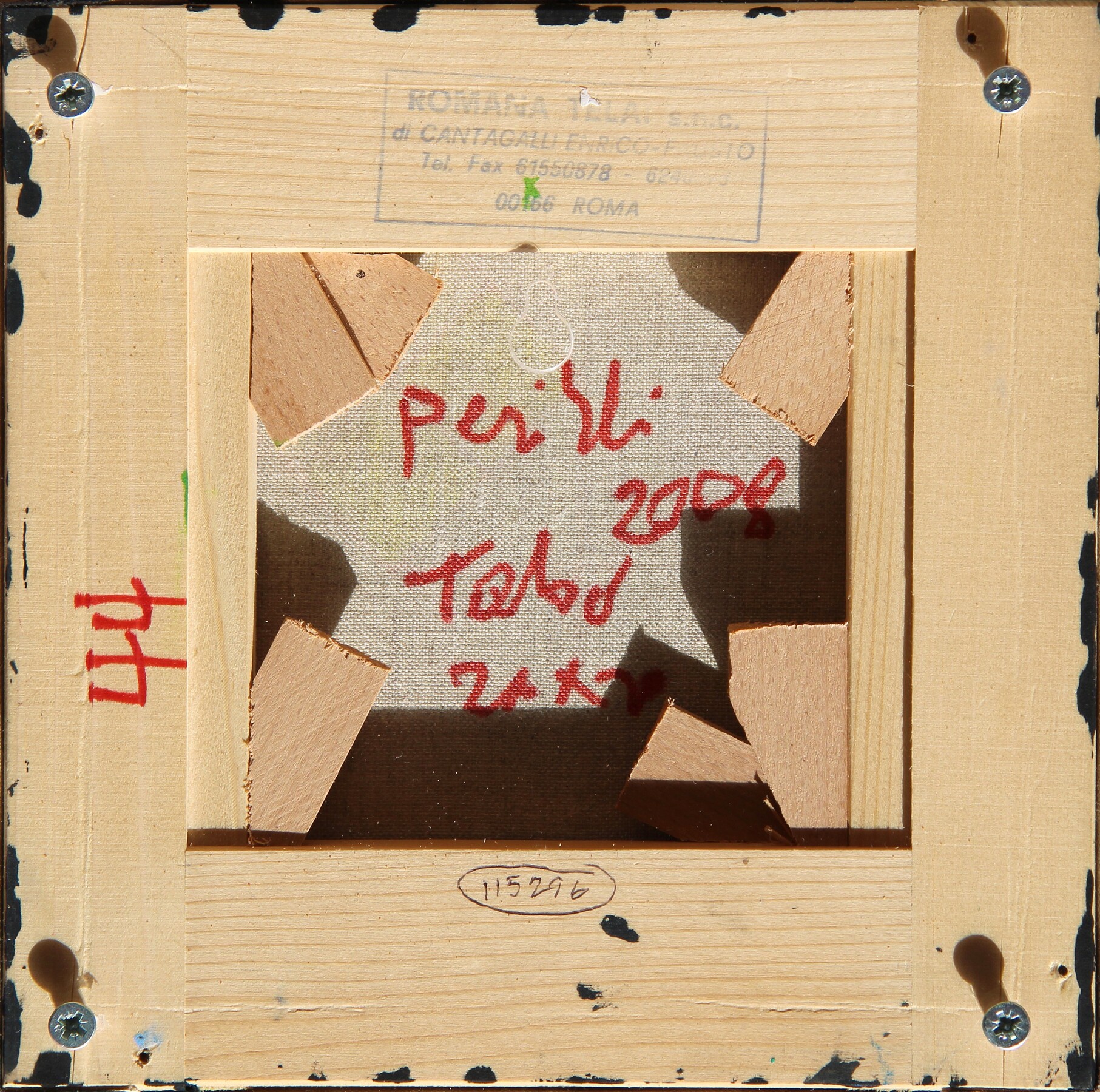Firma, data, titolo, misure "Perilli 2008 Tabo 20x20" (al retro)