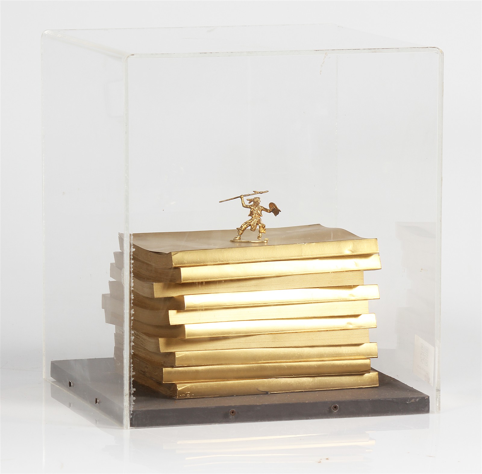 BORY JEAN FRANCOIS (n. 1938) Eruttarettil. 1970. Scultura. Cm 31,00 x 35,00 x 31,00. Contenuta in una teca di plexiglas. Alla base cartiglio descrittivo con firma dell'artista.