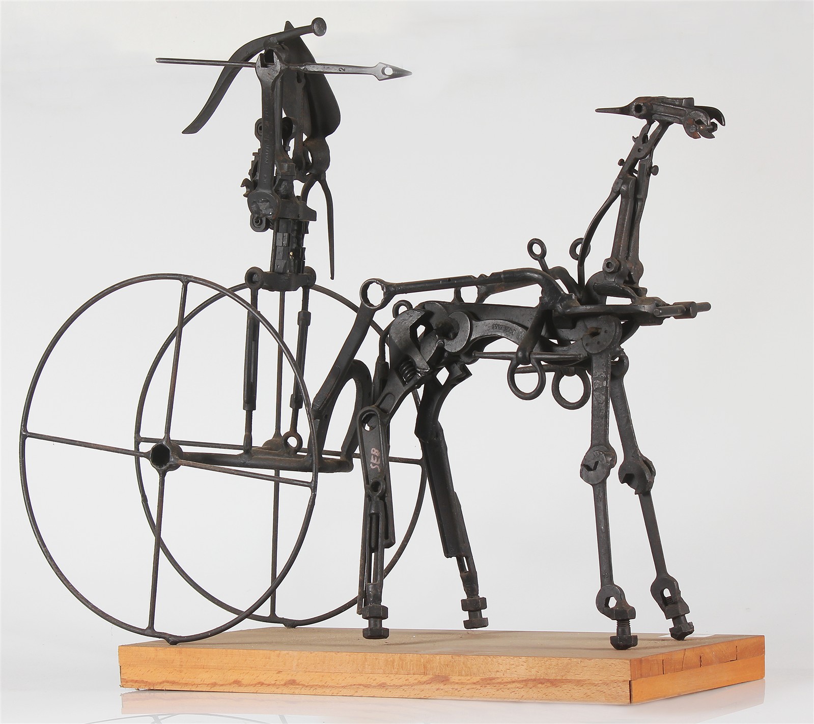 PANTIERI PIER CLAUDIO (n. 1927) Guerriero con biga. Ferro. Cm 83,00 x 69,00. Base in legno.